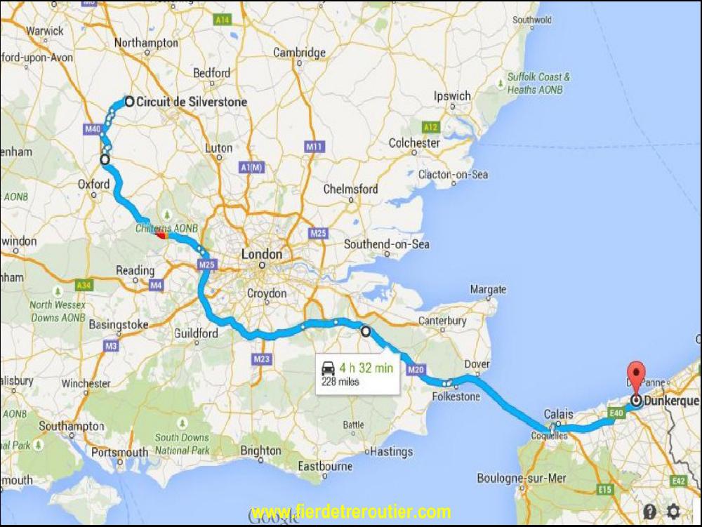 Je rentre donc tranquillement par la M40 pour rejoindre London. Comme c'est férié aussi ici, ça roule plutôt bien, il y trés peu de camions. J'ai mal de partout ce matin, et je suis crevé. J'ai pas envie de courir, je me cale à 85, comme ça tout le monde me double mis à part les TESCO qui doivent se trainer à 75 pour le bien de la planète. J'ai presque pas eu de bouchons sur tout le trajet et je me radine avec 3h30 de route à Dover. Il y a de gros travaux sur le port, le tobogan est en passe d'être détruit, combien de fois tout a voltigé dans ma cabine en passant sur ce pont !! J'ai eu droit à un contrôle ce matin, ils ont voulu voir si j'avais pas d'armes dans mon camion, j'ai dû presenter ma fourchette et mon couteau... Pour changer, je prends le DFDS pour Dunkerque. C'est blindé de touristes et de PECO du coup le rafiot part avec 15 minutes de retard. Je suis même pas monté dans le bateau, et je suis resté dans ma cabine tranquille. Pourtant le repas est offert aux chaffeurs sur la ligne, le dernier coup, j'ai eu droit à 4 saucisses de Strasbourg avec une montagne de frites, ils peuvent se les mettre ou je pense.