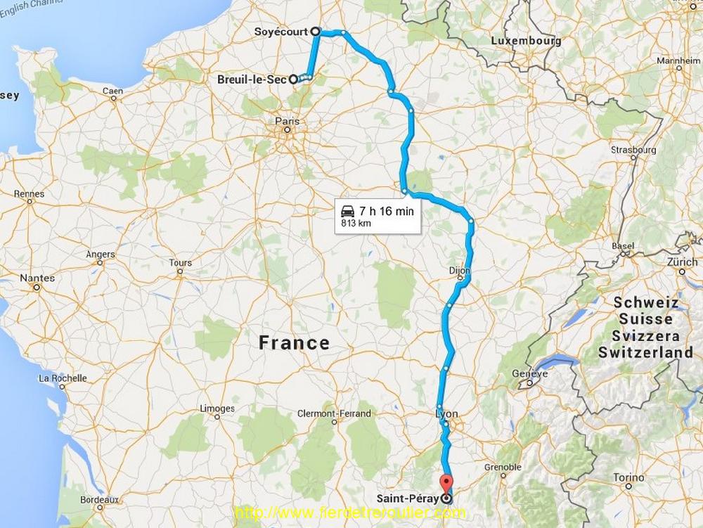 Me voilà donc à Soyecourt, ou Soyebref, c'est pareil. J'ai 20 big bag de pétote ou peu'n tierre pour être plus proche du terroir, 25T en tout (soit pas loin de 25.000kg) qui finiront demain sous le couteau aiguisé du producteur ardechois qui en fera des chips qui feront votre bonheur à l'heure de l'apéro. En 1H c'est bouclé, et je peux prendre la route du sud. J'hésite pas longtemps à éviter Paris capitale de la France et je rejoins St Quentin et l'A26, au moins ça roule tranquille. Je trace jusqu'à Troyes ou je casse la croute.