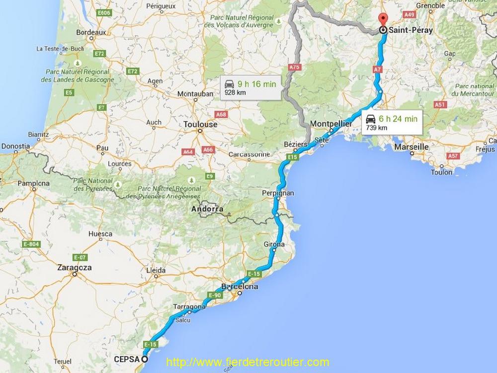 Ma montre Seïko affiche 4h20, ce qui signifie qu'il est l'heure de me lever, prendre mon petit dejeuner tranquillos et demarrer à 4h49. Ce matin, le temps est humidos à en croire la buée sur les rétros, et non seulement il est humidos, mais par moments, il pleut. Oui oui oui, de l'eau tombée directement du ciel vers le sol. Je deconne comme ça, mais en vrai, j'ai calculé mes heures au plus juste, ce soir je dois à tout prix remonter jusqu'à au moins Peniscolà. Mais pour le moment, je suis calé derrière un frigo sur l'A7, en se suit à 500m d'intervalle, je l'ai jamais rattrapé, il m'a jamais semé, si bien qu'on s'est suivit tout le long, il avait le feu au cul aussi le bougre ! Le jour se lève gentiement une fois sur Valencia, et après Sagunto, je retrouve du trafic, les Valenciens vont tafer. De mon côté, je pense plus qu'à une seule chose boire un café là ou je ferais le moins de detour possible, ce parking existe, c'est le caféstore de Massalvès. J'aime pas trop m'arrêter dans ce genre de chaine, mais là, j'ai pas le choix.