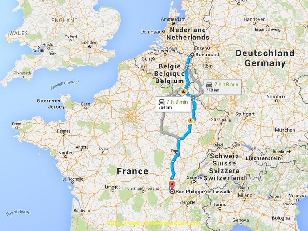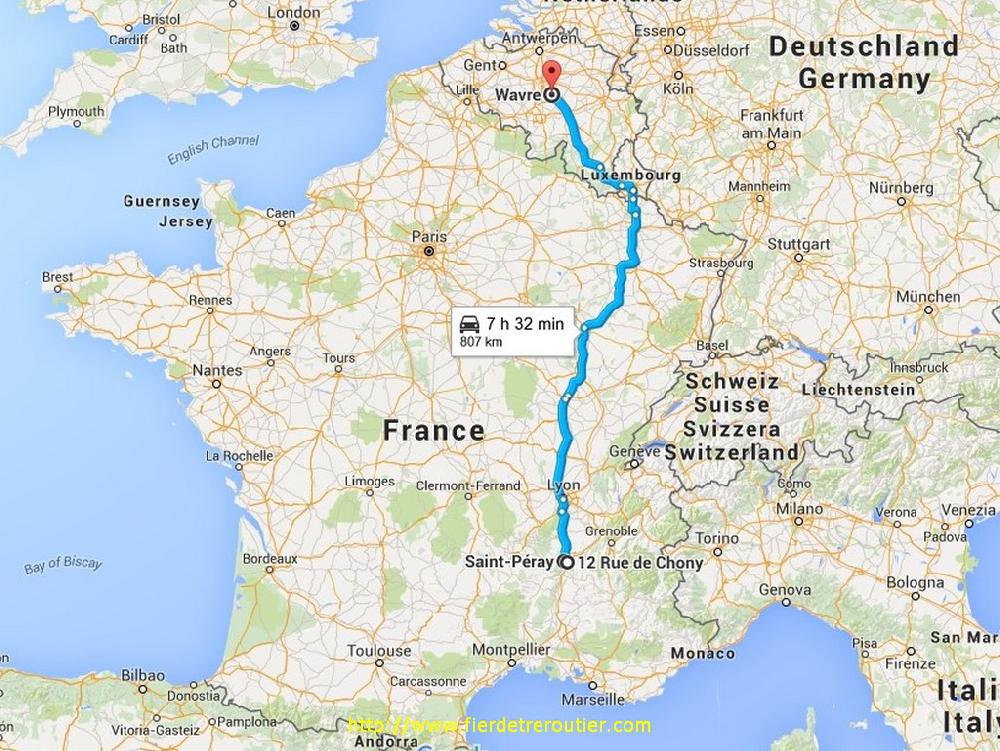 De là, j'ai plus qu'à rouler tranquillement les cheveux au vent, vu que ça souffle grave aujourd'hui, un peu de gasoil en passant à Tournus et cassage de croute à Dijon. J'hésite par ou monter, Lille/Gent/Rotterdam, Chalon/Charleville/Charleroi ou Les Ardennes. Finalement, j'opte pour la dernière solution, ça m'évitera de dormir à Lille centre vu les heures de route. Comme je suis pas completement con, je passe par Longwy quand même pour éviter le sinistre Luxembourg et ses bouchons, et dès que je passe la frontière Belge il se met à pleuvoir, par contre, il y a personne sur l'autoroute, je peux rouler au taquet, et croiser un long convoi de tracteurs agricoles de retour de manif à Bruxelles. Dans mes rêves les plus fous, j'aurai aimé passer la capitale à la fraiche, mais ça fait trop juste, alors je stoppe faire mes 9h à Wavre, garé comme une merde de chien. C'est lundi, ça ira bien !