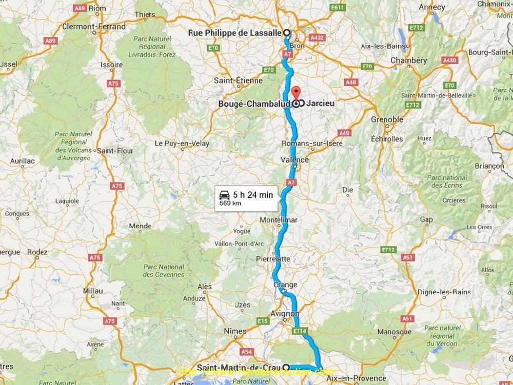 Comme prévu, les ouvriers du chantier arrivent à 7h30, précis les mecs ! J'ai donc plus qu'à faire une savante marche arrière pour me mettre en place. Par un coup de chance incroyable, le bon rouleau est celui qui est du bon côté, j'ai pas fait exprès, il y a heureusement de la main d'oeuvre pour vider, et surtout recharger, à 8h c'est une affaire classée. Etant déjà bien en zone rouge niveau heures de la quatorzaine, je laisse passer les bouchons, et je demarre à 9h. J'ai le temps de mater les jeunes lycéens, rouges comme des ecrevisses, faire des tours de terrain. Une heure plus tard, ils seront tout transpirés pour affronter une journée de leçons. Lycéen, je m'étais demerdé à avoir une dispense de sport tellement je trouvais ça mal foutu, j'ai jamais courru, et pareil à l'armée, je me suis bien demerdé ! Faut être débile pour courrir comme ça, après rien ! A 9h pile, Google Map est passé au quasi vert, et je demarre, enfin, je fais une savante marche arrière pour ressortir, cette fois-ci pas en sens interdit, et traverser BY DAY la Croix Rousse, facile. Je suis quand même pas mécontent de retrouver le periphericos lyonnais.