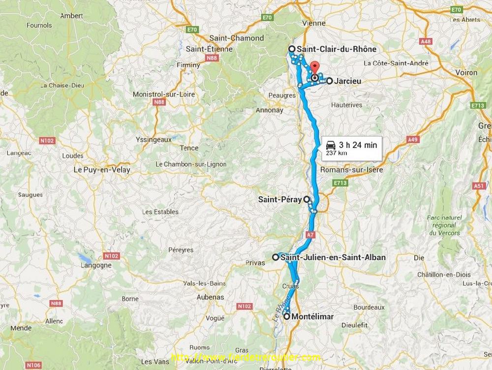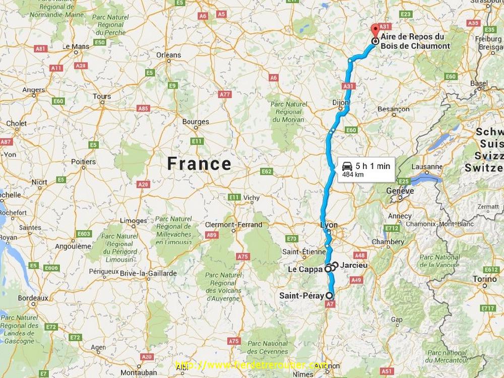 De retour sur le grand ruban, il fait jour blafard.... Il y a pas mal de travaux un peu partout, c'est pénible. Vu que je suis pas en retard, je fais un arrêt chez l'esthéticienne à la BP à Macon ce qui me permet de passer Lyon à la régule entre midi et deux. Il y a un vélo entre Chasse et Vienne, le type a dû avoir le trouille de sa vie... J'ai juste le temps d'en serrer 5 à Daniel de chez Sandermans à Roussillon, j'en profite pour casser une graine car j'ai la dalle, et je fonce à Jarcieu.