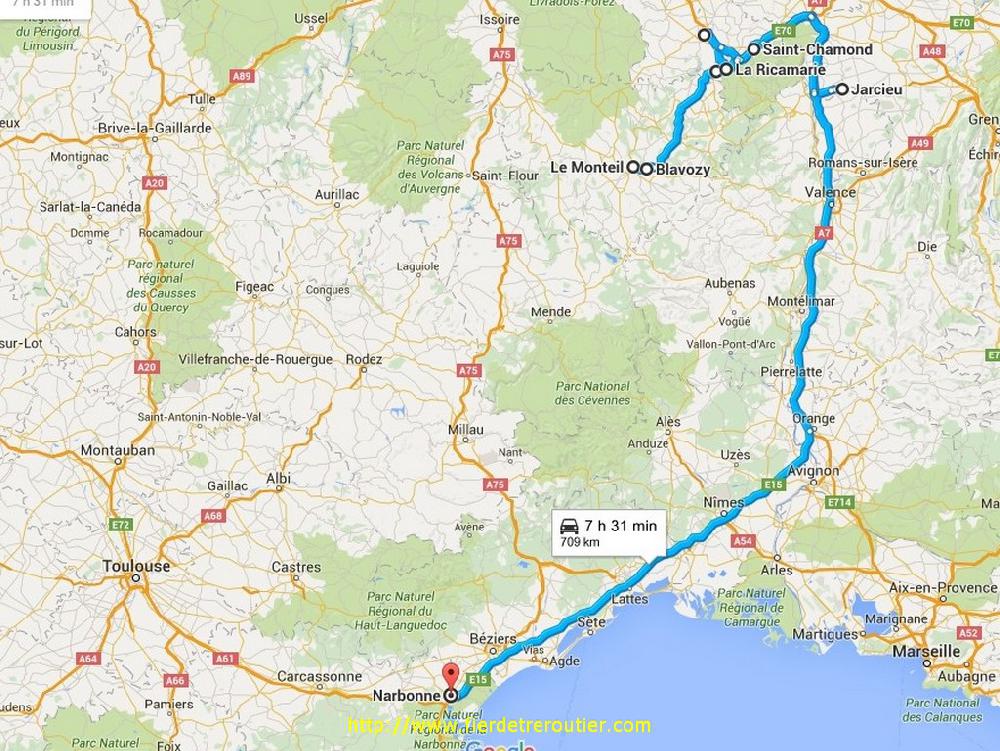 Heureusement le B18 s'est vite affiché au tableau, et j'ai chargé juste 2 destinataires en Catalogne desormais bientôt independante, faudra mettre les plaques TIR bientôt pour aller à Valencia, je languis de passer en douane à Amposta ou par là, on sera bien !!! Faut jamais deseperer de la connerie humaine. Pour demain, j'ai du boulot tranquille, impec. Quand je descends, l'A7 est vide à la montée, c'est bizarre, d'un coup. En fait il y a eu un gros carton en haut de la côte de Roussillon, du coup derrière il y a un mégabouchon. Aujourd'hui, j'ai la baraka, si bien qu'en marchant correctement je debarque en 9h53 à Narbonne, tranquille, détendu, zen.
