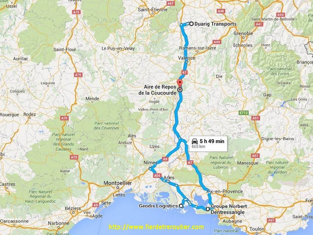 Sachant que je suis chargé pour Vendargues, j'ai plus qu'une chose à faire, me caler sur l'autoroute plein sudiste warrior et foncer tête baissée avec environ 2344kg dans la semi, autant dire que ça pinaille pas. Autant en Suède, il y a environ 0 camion qui m'ont fait coucou à la croisette, autant sur l'axe A31/A6, ça n'a pas arrété, c'est bon d'être une star nationale LOL ! Pause casse croute après Macon, il me reste 2h30 à rouler, et vu que je passe Lyon à 20h30, c'est du velour et je me radine au calme juste après Montélimar Nord avec 9h52 au compteur, impeccable.