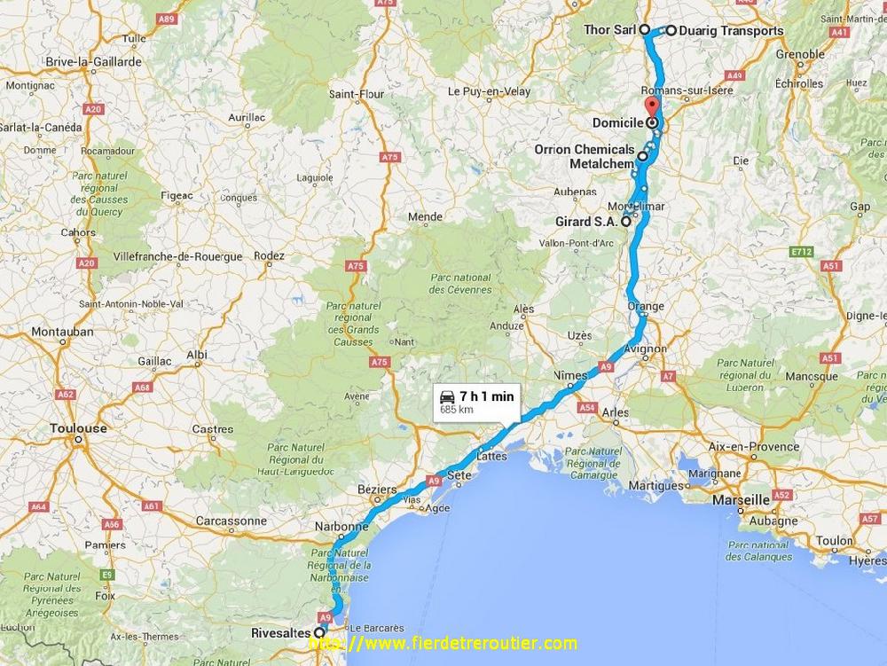 Une fois vide, il est déjà midi, et j'ai le temps puisque je dois charger à 14h à Malissard, la bas en bas ou c'est bien moche donc je me paye un bonne pause gastro au calme, et dans le coin c'est pas le calme qui manque. Après ça, je me mets un coup de pieds au cul et je descends charger à Malissard, je ramène tout ça au dépôt ou c'est l'effervecence habituelle du vendredi, je récupère une mini tournée pour Barcelone lundi, retour à la maison pile poil pour bouffer, ah mais je calcule bien mon coup moi !!! Bon week end et hasta la vista !