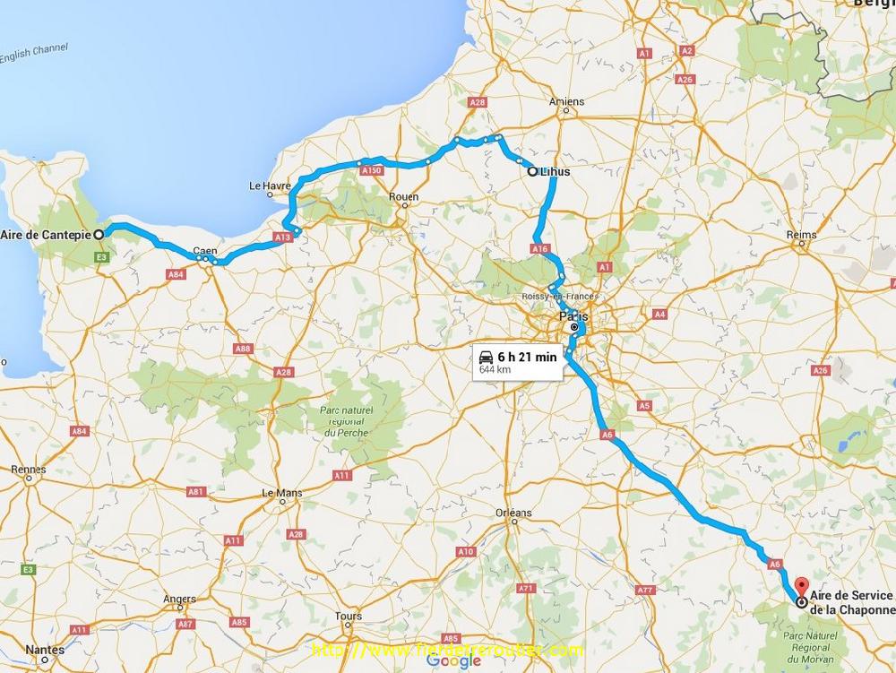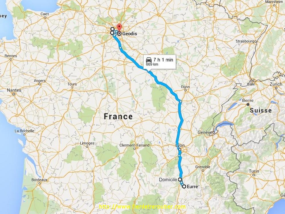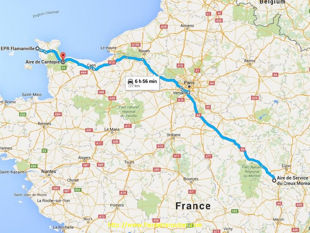 Comme prévu je me reveille grâce à mes 2 reveils à 0h32, c'est dur. Il gèle à -2 ce matin au Bessay, une demi heure plus tard je suis lancé sur l'A6 direction Paris Capitale de la France au milieu d'un troupeau de messagers de la night, ça roule plus qu'en journée ici, et y a pas de cadeau, devant moi il y avait deux gars d'une même boite, il y en a un qui a doublé son collègue et ça a duré ni peu ni assez, tant pis s'il y a du monde derrière, vu que personne à la CB, pas moyen de s'engueuler, quelle époque pourrie ! Après Courtenay, il y a plus personne d'un coup je me suis même demandé si c'était normal, j'ai passé Paris à la régule par la Francilienne et la N118 vu que je suis en ADR, au GPS on perd 6 minutes par rapport au periph, autant dire que dalle ! Je double même un gars de chez Paprec du groupe FDR Facebook. Je me pose taper un petit roupillon juste avant la sortie Evreux, ça fait du bien.