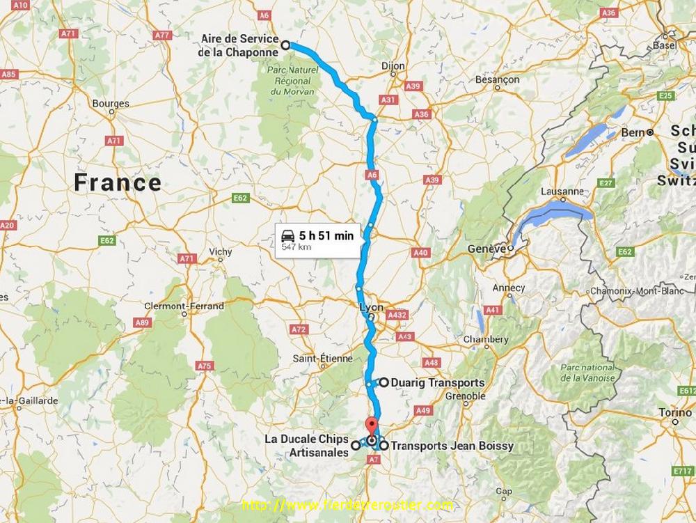 Et ben ça va qu'on est vendredi, parce que j'étais pas, mais alors, pas du tout motivé pour me lever ce matin à 4h30, c'était duuuuuuur !!! J'attends 5h et je decolle bien sagement, il fait calme sans vent, sans brouillard, sans pluie, sans trafic, du moins jusqu'à Beaune ou les premiers casse bonbons font leur apparition, du coup, je fais un stop à Macon, café croissant, ça fait du bien. En fait, je fais un peu trainer pour éviter le merdier à Lyon et passer après 9h à Rillieux, donc, je restoppe à Mionnay, et comme prévu ça passe nickel pour contourner Guignol city. Je sais pas si c'est nouveau, mais maintenant, il y a des limitations de vitesse variables, 60, 70, bien sûr, pas 140, 180 !! Du coup, je sais passi les radars sont reliés à tout ça... Enfin, je sors à Valence sud et les choses serieuses pour grimper la célèbre côte du Pin qui relie le magnifique village de St Peray à Le Puy... Mais par chance pour la conso je m'arrête bien avant, à Boffres pour y deposer les patates qui fretillent d'avance à l'idée de devenir de futures chips artisanales ardechoises.