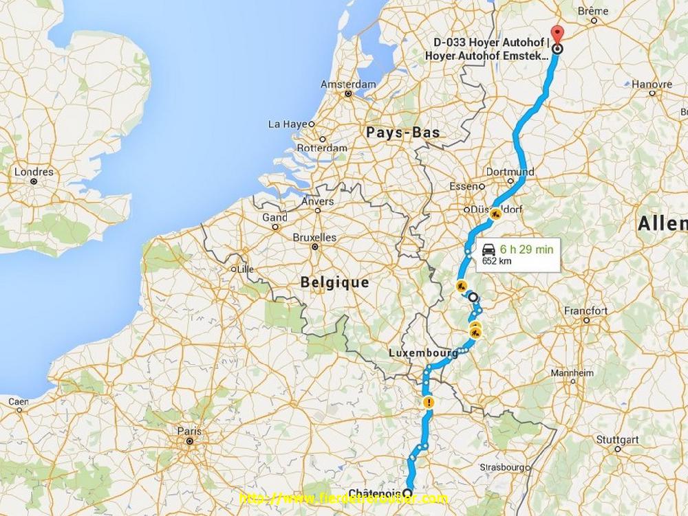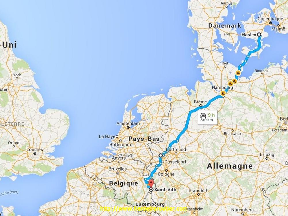A 18h, comme prévu je decolle, il reste bien encore quelques residus de bouchons d'ici de là, mais le temps que je me radine sur Gladbeck, ça sera terminé, même en 2016, l'allemand reste allemand, à 5h il commence à squatter les autoroutes, mais à 18h il est déjà bien en train de mater Derrick à la télé. Et du coup, j'ai eu une pensée pour ce vieux renard de la ruhr, Juju42, j'ai tout passé au taquet, legumier inside, si un jour Juju vous dit que la Ruhr c'est la merde, ne le croyez pas, c'est du mytho, j'ai même passé les 4 feux de Gladbeck sans m'arrêter et ils étaient verts en plus ! Je pousse un OUF de soulagement après Aachen, dans l'autre sens par contre c'est la cata, la Police Belge fait des contrôles serieux et ça peut se comprendre, bien que je doute de l'efficacité de la chose. Je fais tirer au plus loin, et ça me fait atterrir sur un pauvre parking juste avant St Vith, avec un nom bien pompeux, tout ça pour être le long de l'autoroute... Enfin, on s'en fout, y a plus grave dans la vie.