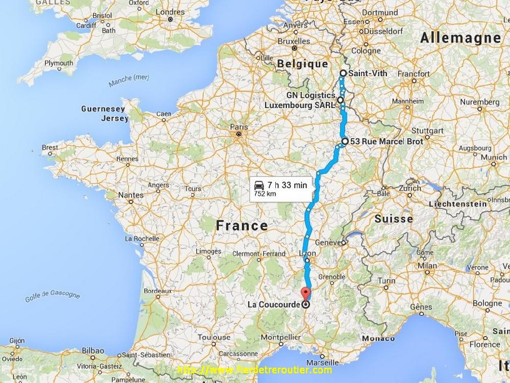 Il me faut un peu de courage pour demarrer ce matin, il est tôt, 8h déjà ! Mais à la vue de la météo, on se demande si on est pas au milieu de la nuit, il fait bien mocheet humide, pour un peu, on se croirait dans les Ardennes Belges. 2,6km après mon départ, je bifurque sur la N62 à St Vith, n'imaginez pas une large nationale, non, c'est une route bien merdique, mais tellement buccolique, en vrai du jour ou j'ai découvert cette "bretelle" qui évite soit Liège, soit Bitburg, j'ai toujours aimé, quand on arrive au Luxembourg, le changement est flagrant et la route devient plus large et ça roule. Fait nouveau sur la N7 au Luxembourg, il y a des radars de partout, et je crois bien que je me suis fait flasher, mais les autres aussi derrière, pourtant j'étais à 80. A moins que ce soit 70 sur la natio au Lux ? Bref, j'arrive légerement en avance par rapport à mes previsions à Khelen. Pendant qu'un jeune vide la semi pour qu'il s'occupe un peu, j'écoute Moktar se lamenter sur la penurie de boulot.