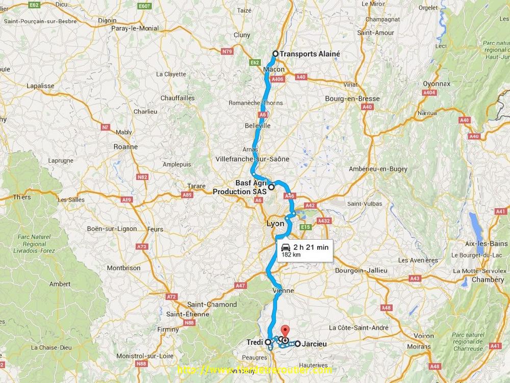C'est donc à 14h45 précises que je pose mes roues sur la bascule, pile poil ! J'ai eu le temps de manger, faire la sieste, et du coup et c'est le plus important avoir une 11 de moins à caser cette semaine. En moins d'une heure c'est plié et je peux aller respirer l'air pur en allant charger des plantes à Anneyron. Il y a 83 rolls à charger, sachant qu'on peut en mettre 43 dans la semi ça va être chaud. Je fais donc 2 allers retours entre le producteur et la plateforme à Anjou, ça va bien comme boulot, pas d'attente et bonne ammbiance, facile. De là, je retourne à la kommandantur à Jarcieu ou je suis attendu de transpalette ferme afin de liberer le quai n°2 de 22 IBC d'additif à detination du Luxembourg.