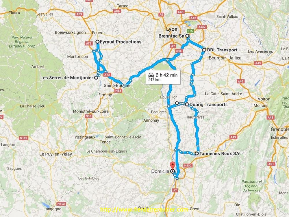 Compte tenu du fait que cette semaine j'ai pas réussi à faire 2 coupures de 11h qui comptent, je dois imperativement en caler une aujourd'hui. A 8h, les bureaux ouvrent, et je vais donc m'enquerir de mon futur proche. Je me félicite d'avoir marché un peu, j'ai gagné 15 minutes d'amplitude vu que le responsable a pas entendu le reveil, Fabien est puni comme moi, il charge pour le 43, moi pour le 26. Le temps d'un café, on se sépare et je me jette sur l'A46 deserte, incroyable comme c'est bon ! Une heure de route plus tard, après avoir fait un bout de chemin calé sur le 19 avec Fabrice, je suis à Romans ou je livre une vieille tannerie, il y a un bail que j'étais pas venu dans le quartier, je reconnaissais plus, hasard de la vie, je connais le cariste, c'est un ancien voisin de St Peray que j'avais perdu de vue qui a immigré à Romans.