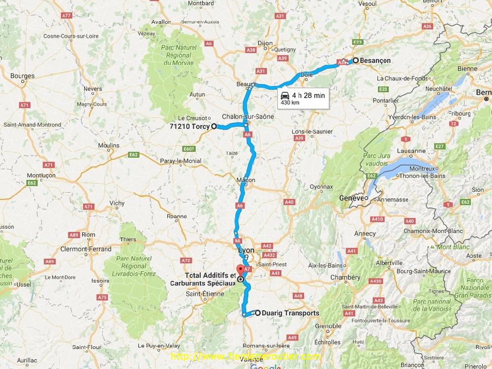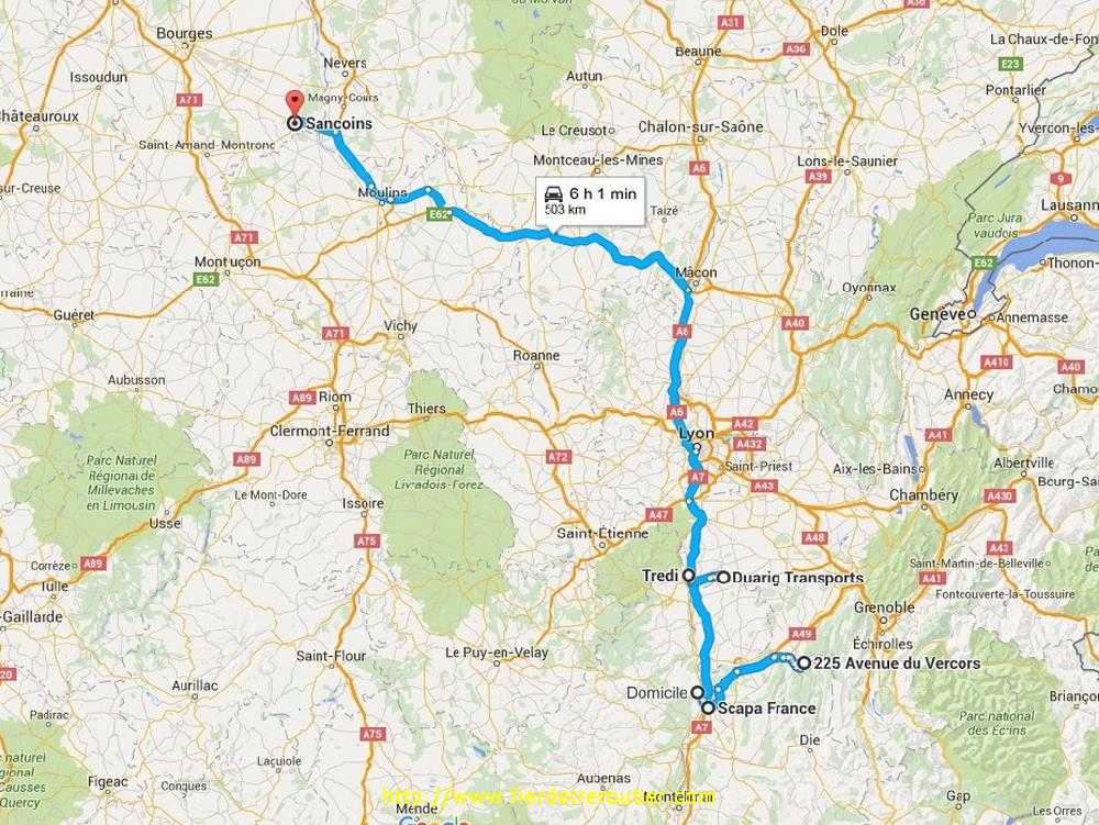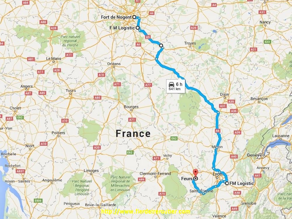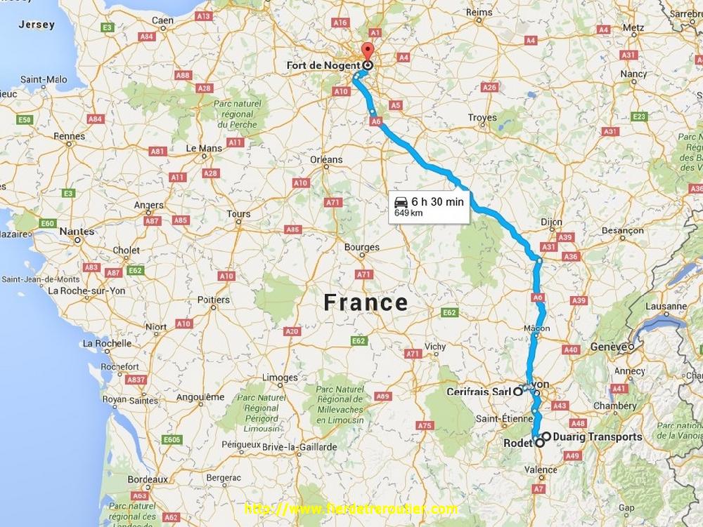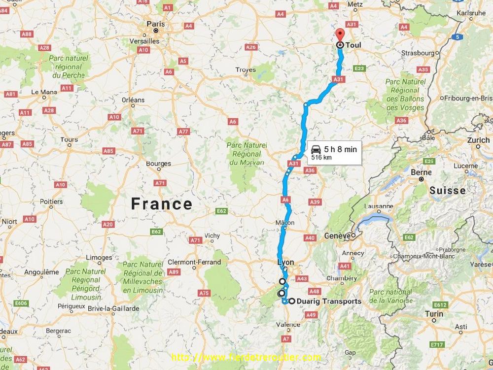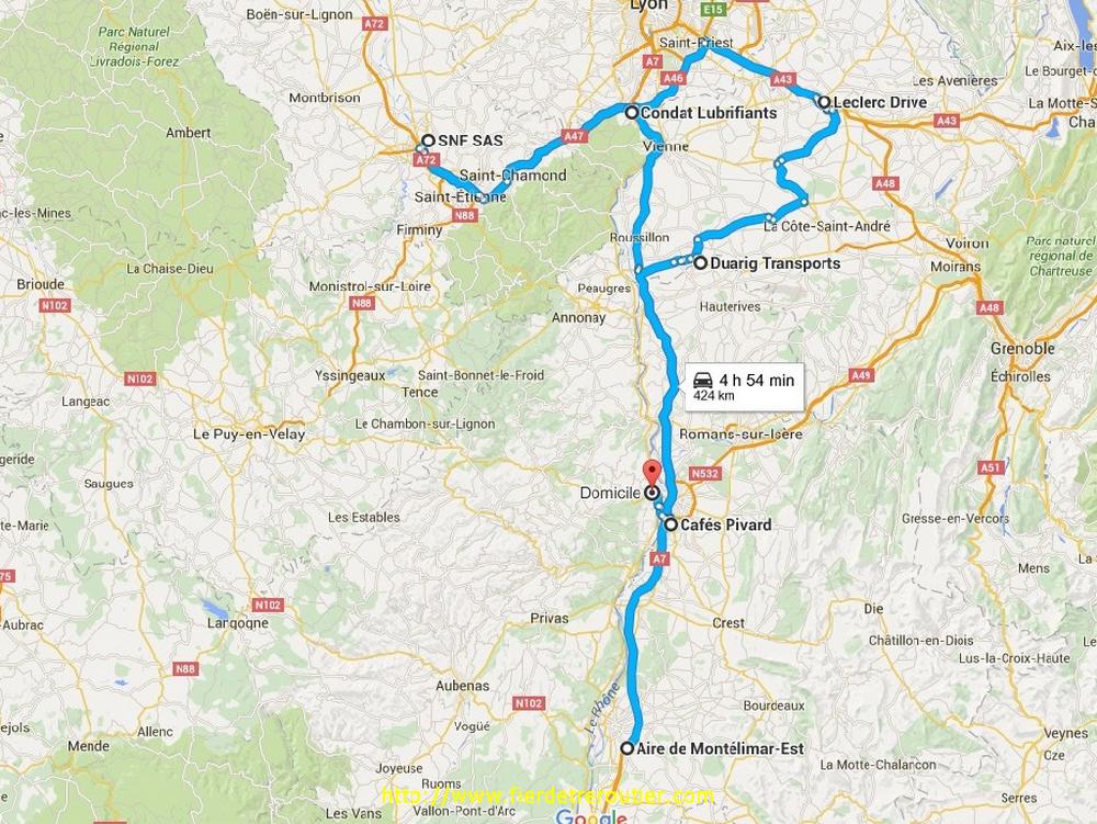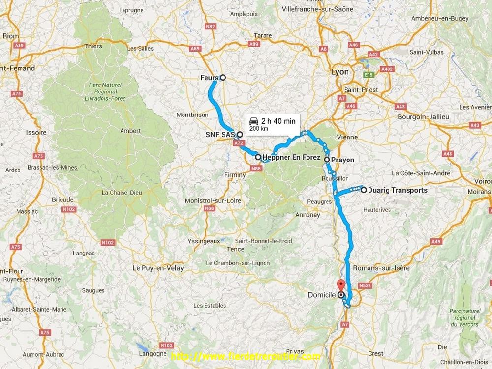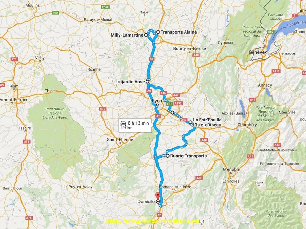 Le dernier coup, j'ai mis 2h30 tellement j'avais galéré sur la N86 et dans la traversée de Lyon. Je jette un oeil sur Map, et visiblement ce soir, ça devrait le faire. Vu que j'ai déjà 7h de volant, j'éspère faire ça en moins de 2h. Et effectivement, ce soir ça roule à fond et de partout, même au Fourvière, nickel chrome. Pour dire à quel point ça a bien roulé, j'ai mis 1h26. Oui je sais c'est vachement bien, mais ce qui est très con, c'est que j'avais posé mon carnet de CMR sur mon hayon du temps que je rangeais mon transpal dans le coffre à palettes. Evidement, je m'en suis souvenu, mais à Bessenay, j'ai l'air bien con une fois de plus. En ce moment j'oublie des trucs, un jour je finirai bien par oublier de me lever autant bien !!