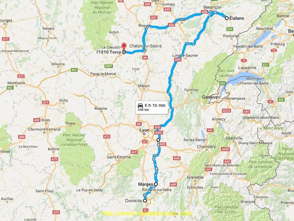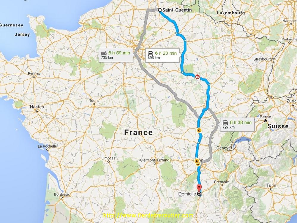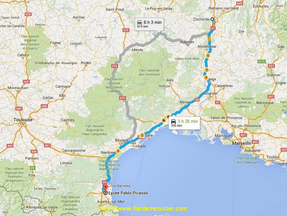 Avant de repartir je checke google map, c'est déjà le bordel sur Lyon, mais c'est tout. D'ici, en temps normal je rentre à St Peray en 3h45, ce qui me laisse 45 minutes de marge j'ai donc bien envie de tenter ma chance car je suis un Lucky Man. Après Beaune, l'A6 est bien chargée mais même si ça frenouille parfois, ça roulotte quand même. L'A46 est limitée à 50km/h cet après-midi, ça fait bizarre, c'est pour reguler le trafic, donc, y a des blaireaux qui roulent à 40, bientôt l'A46 sera autorisée aux tracteurs et aux vélos. Comme je suis un vrai con, je me cale à la régule à 70 ! Petit à petit ma marge de manoeuvre diminue aussi vite que le cerveau d'un homme normal à la vue d'un bikini. Après Ternay, je croise Péli qui me snobe et Tophe qui a une bonne module, c'est à ça qu'on reconnait les vrais ouvriers ! Heureusement après ça roule à peu près bien jusqu'à Tain, et c'est la delivrance, je rejoins mon beau departement et mon home sweet home ! Une fois garé, j'ai 4h31, moi je dis que j'ai bien fait de pas habiter 1km plus loin !