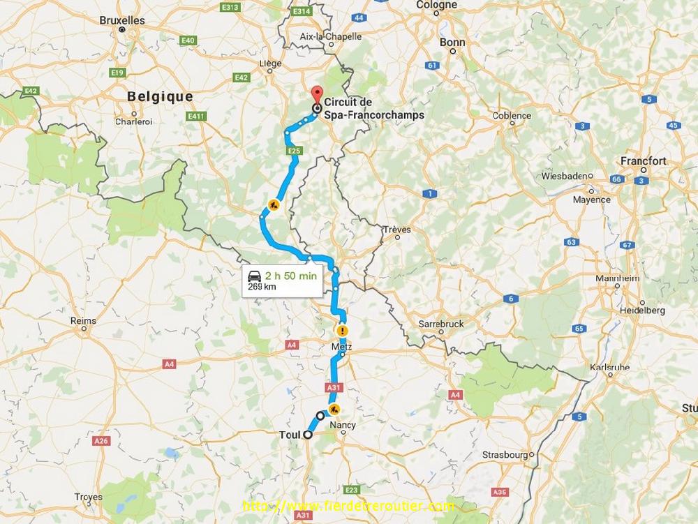 De là, je me pose à la dernière station au Luxembourg, ou je n'ai eu aucun bouchon, ça fait bizarre, bref arrêt à Capellen courses clopes dosettes de café à 5,99€ les 100. Il existe bien une frontière entre le Luxembourg et la Belgique, aussitôt franchie il se met à pleuvoir, et pas de la petite fluinette, non de la grosse drache qui tache, mais c'est comme ça, j'aurai dû choisir Tunis comme destination, quel con je suis ! Cassage du graine juste après Baraque de Fraiture je debarque à Spa Francorchamps en pleine réunion de stratégie de distribution de fûts.