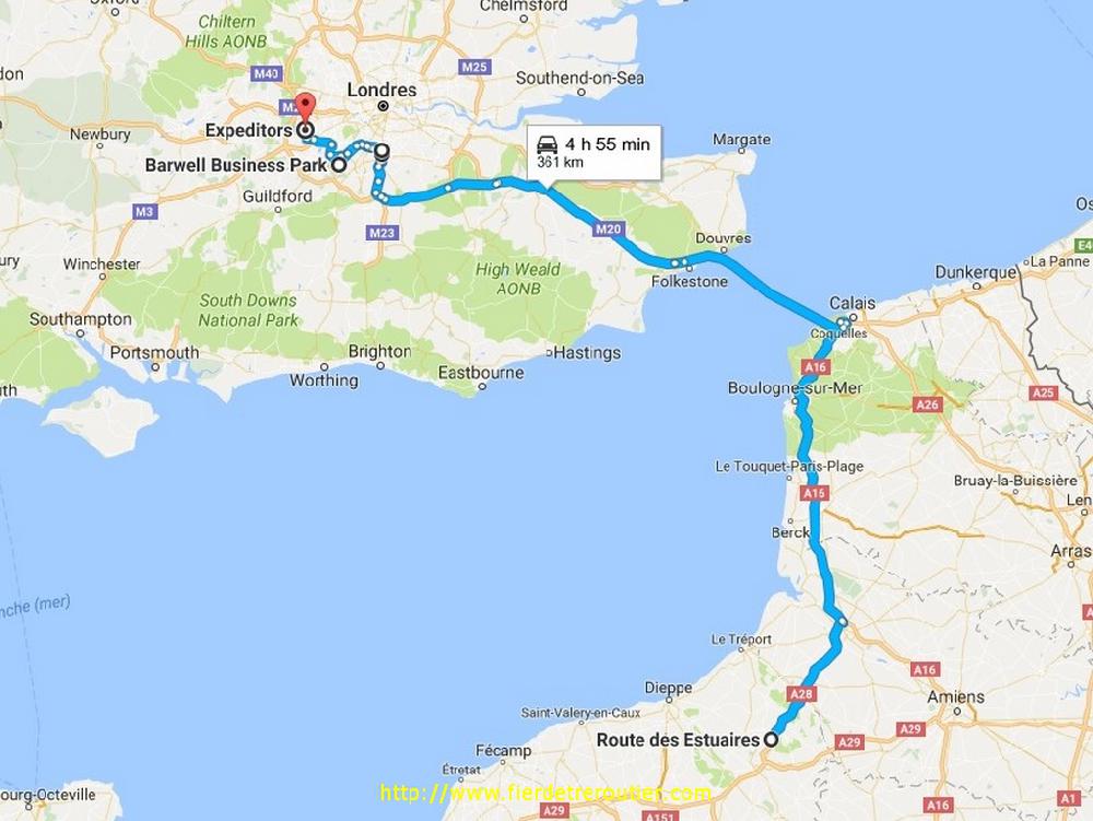 C'est pas parce que c'est la journée des enfants qu'il s'agit de lambiner. Ce matin, je suis hyper motivé, je demarre à 4h. J'avoue que j'ai hésité à partir à 3h, mais j'avais peur après d'être short en amplitude parce que c'est souvent comme ça. Et quand on a pas idée d'à quelle sauce on va être manger mieux vaut être prudent, tout ce que je sais, c'est que je dois livrer le premier client qui est au tablier ce qui est logique, dans le matin à Croydon, j'entends encore Stephane m'annoncer du "SUD LONDRES", je me voyais musarder dans la campagne du Kent, Croydon ça touche Londres, mais au sud, c'est vrai. RAS sur le trajet jusqu'à Coquelles, ça roule nickel, bien que je me mefie quand même dans les abords du tunnel, il y a déjà la foule ce matin, comme je suis absolument sûr de moi, je zappe les contrôles et grapille quelques minutes, il n'y a guère qu'au passage des contrôles des passeports que ça ralenti.