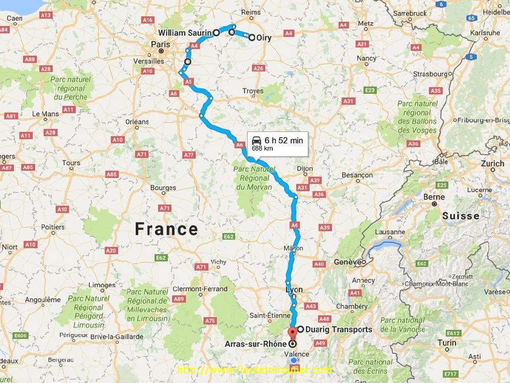 J'hésite un peu pour la route à prendre pour descendre, le GPS me dit bien de prendre l'A4 jusqu'à Reims, mais j'opte pour un effleurement de la région parisienne en passant par Meaux et la N36, je crois que ça m'a fait gagné 20 minutes. Sans compter que ça roule nickel cet apreme et qu'il fait presque beau. Arrêt douchas à Auxerre ou je fais la connaissance de Seb8457 de chez TER, cassage de croute à Chalon, en même temps qu'un jeune bien cool que je croise souvent avec son R730, mais dont j'ai bouffé le nom, je me fais vieux et puis y a du brouillard dans la vallée de la Saone. Quant à mon chef, il a plus d'un tour dans sa besace, si bien que ma semi etant à vider que le 8, je la decroche au dépôt pour recuperer la semidesfooteuxquisepellentlesglaouis chargée avec des arbres. Je fais ma patchak au dépôt vers 22h et je finis mes 9h en direction de mon 1er destinataire, ça me fait roupiller au barrage à Arras, pas dans le 62, y a pas de barrages dans le 62, mais dans le 07, un charmant departement qui gagne a être connu !!!