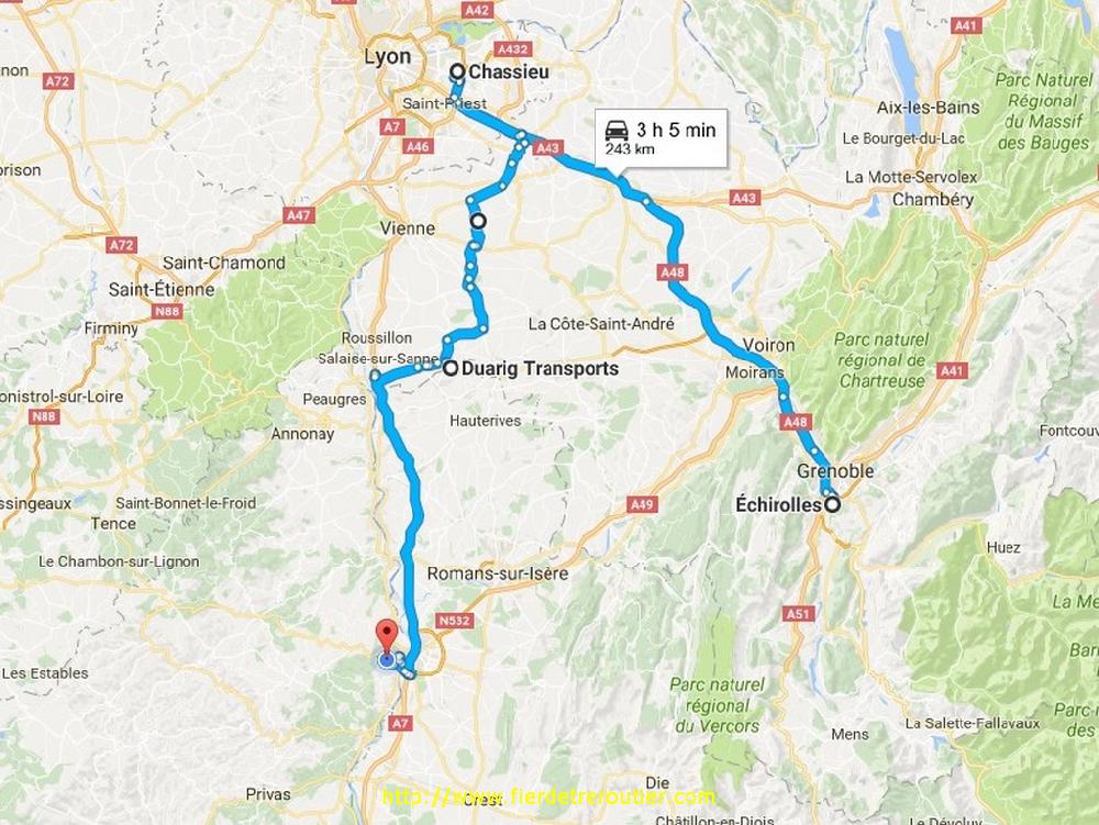 Il est déjà 8h30 quand je décolle de Jarcieu, après avoir fait des mimis à tout le monde, car je suis poli, et je prends la direction de l'EST, enfin, du moins de l'EST du departement de l'Isère, ce qui m'amène après avoir traversé les vastes plaines givrées de Beaurepaire, c'est magnifique. Premier arrêt à Voreppe dans une petiote ZI dans l'entrée du village, ça va vite, juste 4 caisses de pièces mécaniques à prendre. J'ai le suite immediatement après, et je dois passer de l'autre côté de Grenoble, à Crolles. A 10h c'est facile, il y a personne, impec. Bon, j'ai 3 bonnes heures d'avance sur le RDV, je fais style moi pas comprendre bien france, mais le cariste m'a reconnu, merde crotte de bique. Dans mon malheur j'ai de la chance, mis à part un express aerien, avec 2 palettes, il y a personne à charger, je repars avec un petit lot pour Tebay UK, mais ça sera pas pour moi, je crains la pluie. Je file tranquille pour mon dernier complement, prévu à 13h30 à La Chambre.