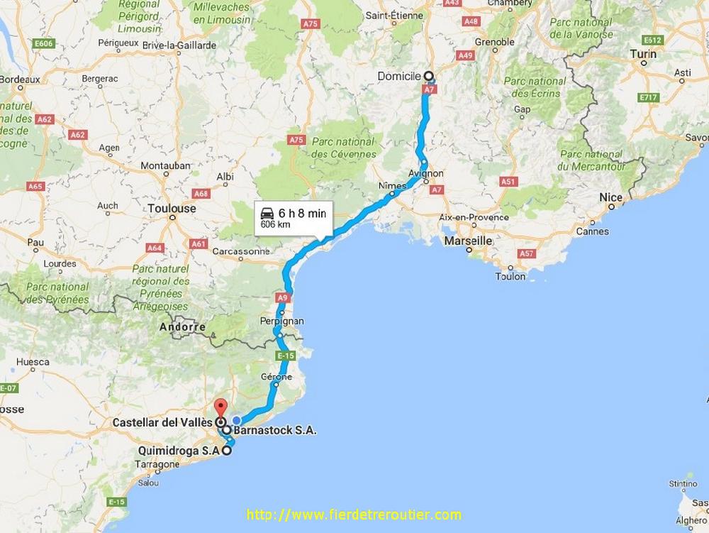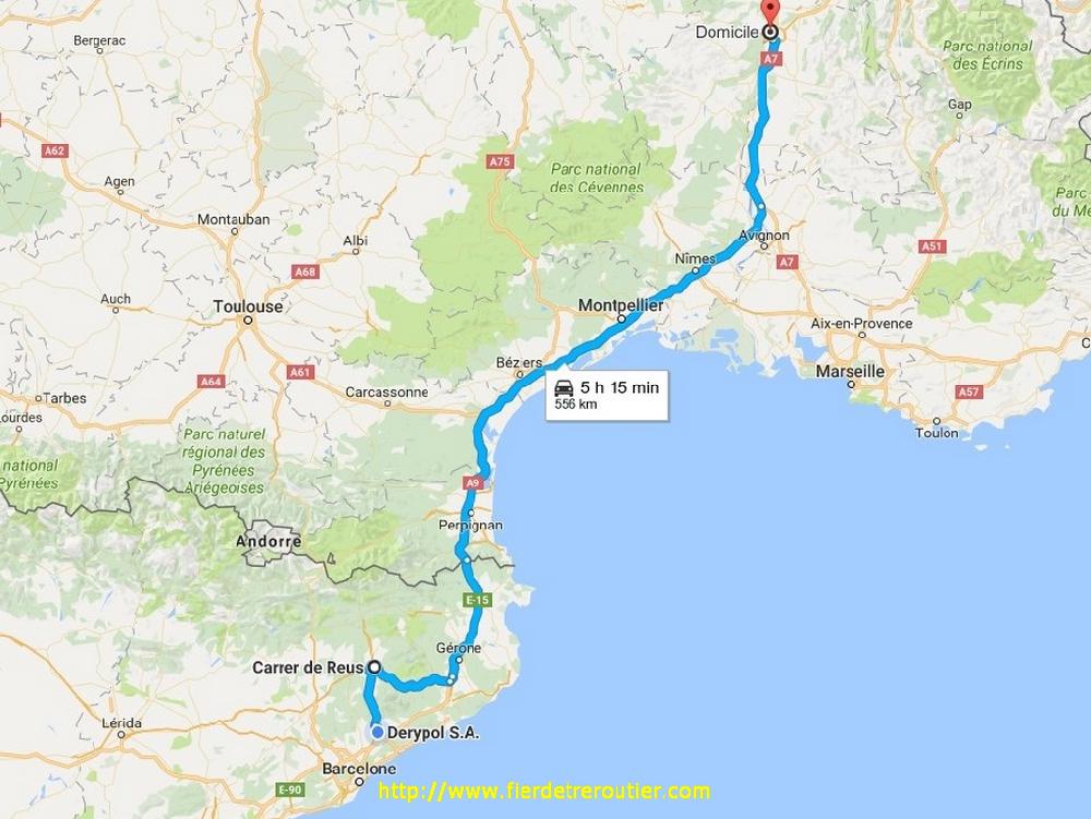 Je monte donc avec une vieille taut vide à Meyzieux ou j'arrive pile poil à l'heure de la bourse sur France Inter, ce qui signifie que c'est le moment de becter. Après ça il me faut decrocher, accrocher une semi à nous à quai, la decrocher pour remettre celle que j'ai amené en debors à quai, un boulot qu'on devrait faire avec un dolly comme il y a sur les ports ! Je vide ensuite à 1km de là chez un recuperateur en tout genre, là c'est des caisses en bois à detruire. Retour au dépôt, je pose la semi et je reprends mon frigo qui a pas bougé une oreille. Ce soir j'étais sensé prendre un complet pour Girona, finalement je me retrouve avec 4 clients autour de Barcelone, c'est cool, sauf que c'est un peu serré niveau timing, et comme si celà ne suffisait pas, je suis parti avec la mauvaise saccoche du dépôt, je m'en suis aperçu pas trop loin heureusement mais j'ai paumé bien 20 minutes. Si on ajoute à ça, un trafic plus que chiant sur l'A7, je me pose à La Coucourde au calme à 18h45, j'en ai plein le dos ce soir !