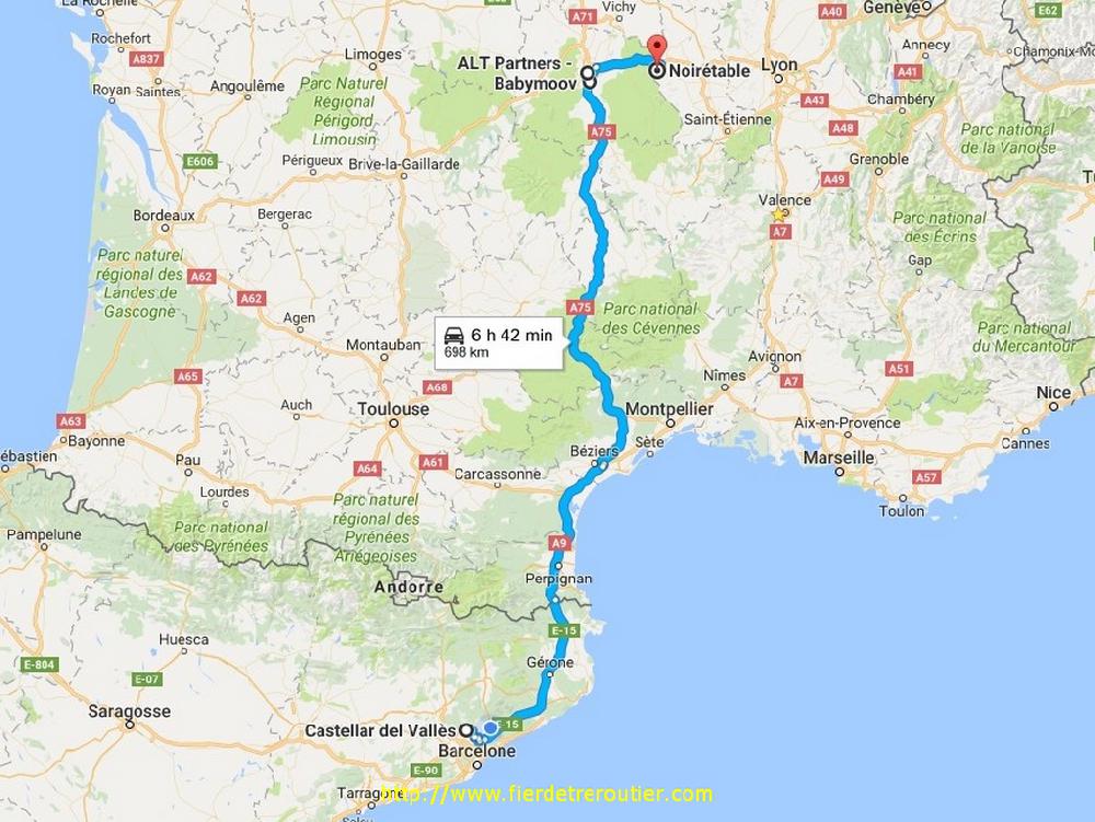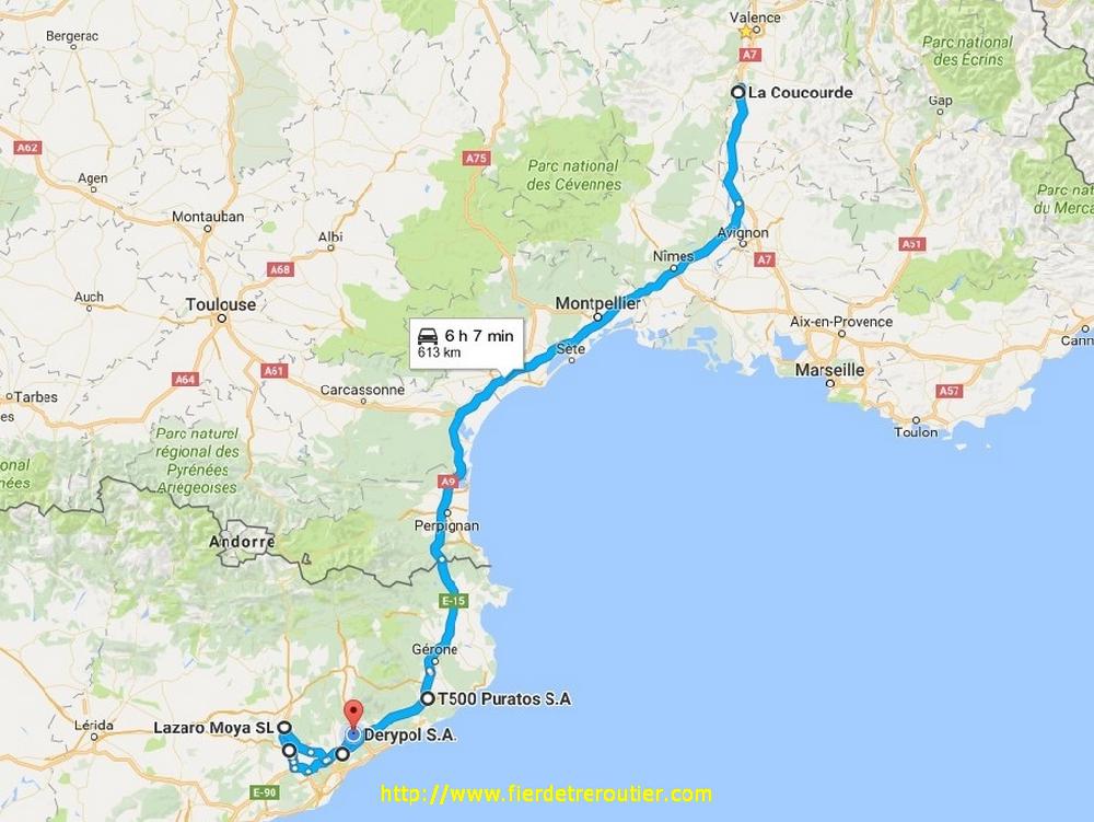 Un peu plus tard, le GO de DUARIG m'indique de remonter ça comme, donc j'obéis. Il pleuvasse tout le long jusqu'à La Jonquera ou pour une fois je m'arrête car j'ai le temps. Il y a vraiment longtemps que j'ai pas mis mes roues ici et c'est toujours autant le merdier, la seule bonne chose c'est que le parking de la SOL est fermé par de grandes grilles, il faut même un code pour accéder au supermarché, je traine pas, en 20 minutes j'ai ma dose, ça me saoule ici en fait. J'ai plus qu'à remonter, et me frapper une difficile traversée de Montpellier, ils nousaiment pas dans ce coin, et c'est vraiment reciproque, je pense qu'en terme d'egoisme et de connerie ils doivent être dans le trio de tête. Heureusement ça dure pas longtemps, c'est jamais qu'un gros village Montpellier. Je me radine à 21h à la maison pour un week end qui risque d'être muy cargado !