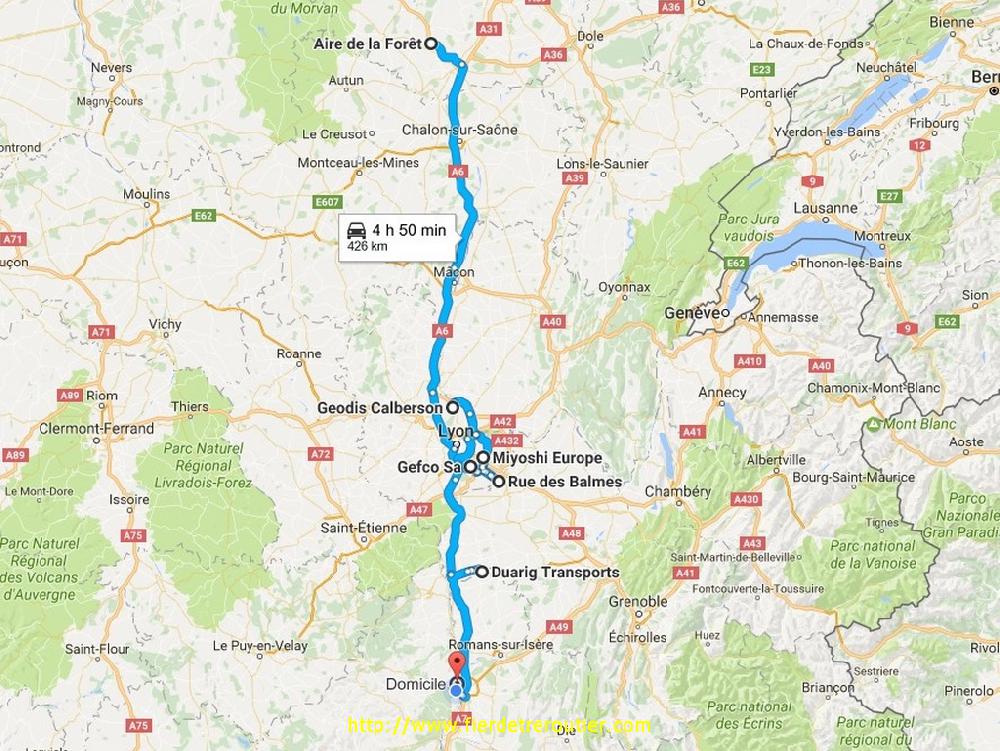 A 7h30 je saute dans mes charentaises et je decolle. Oui, pour travailler on est vachement bien en Charentaises, c'est très confortable. On pourrait conduire aussi en sabots comme les hollandais, mais c'est bien moins confortable. Pas de brouillard ce matin, ça a même pas gelé, il est vraiment nul cet hiver 2016. Comme depuis le début de la semaine c'est vraiment calme pour rouler et ça fait un bien fou. Cependant, je roule pas bien longtemps, je stoppe à Macon afin de me prelasser sous la douche et accesoirement prendre un petit café, oui je tiens à mon confort personnel, je suis un CHSCT à moi tout seul. Du fait que je vais livrer à Venissieux, j'ai le droit de prendre le tunnel, et je ne m'en prive pas, d'autant que Google annonce tout ça en VERT, et c'est vrai, j'ai tout passé à la régule, du moins à la regule des vitesses maximum permises.