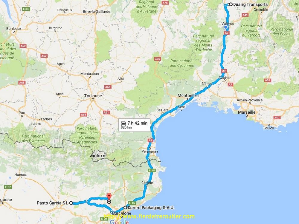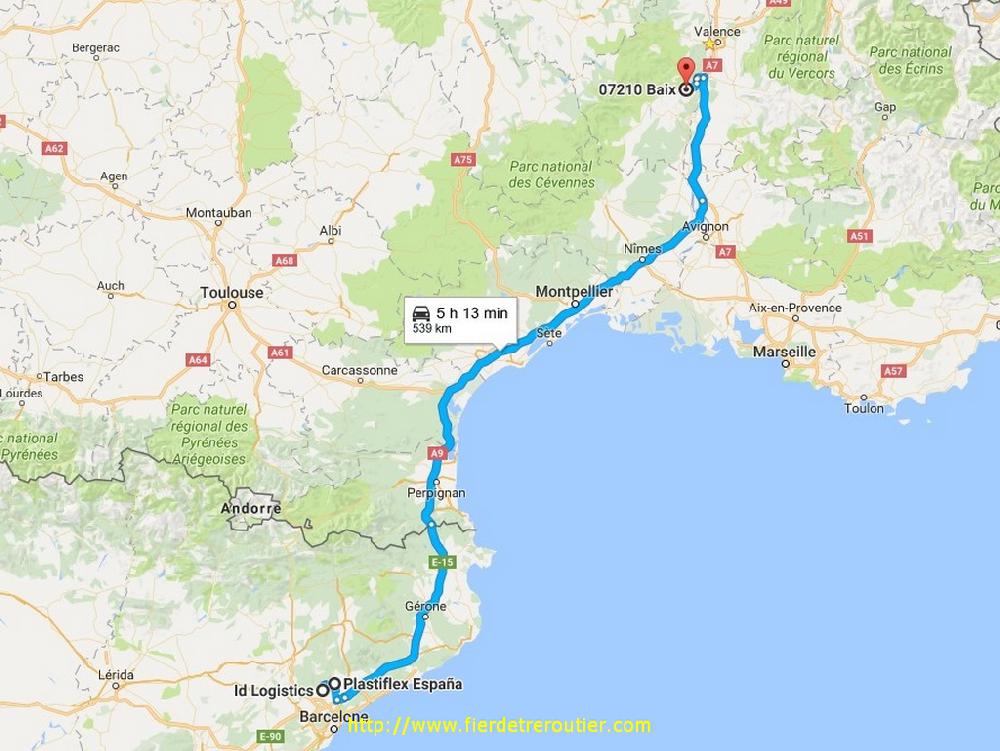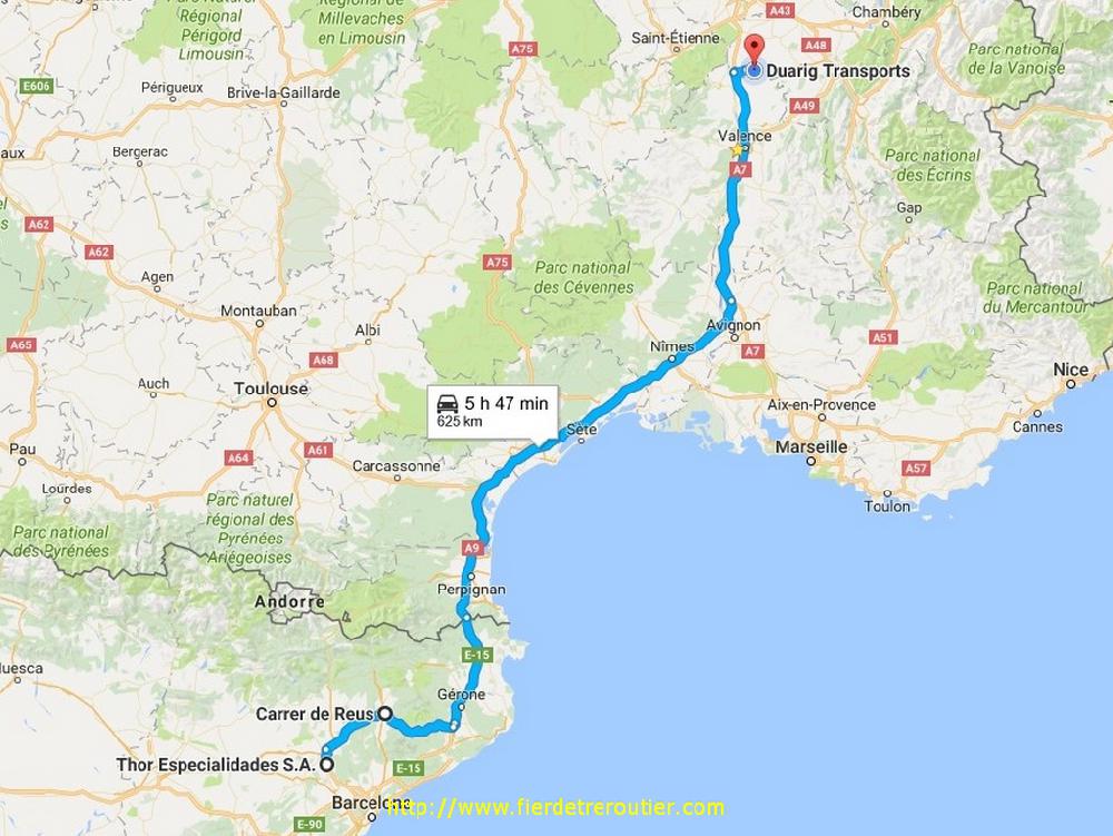 C'est vrai que pour vider ça a été assez rapide, mais par contre le contrôle a duré aussi longtemps qu'un chanson de Celine Dion en format radio FM, soit 1h30. Le pire c'est qu'ils m'ont collé des reserves sur le lot que j'ai chargé en direct, des reseves pour des marques insignifiantes sur des cartons. Heureusement j'avais moi aussi pris des reserves au départ, j'en prends de façons de plus en plus systématique, puisque tout le monde se couvre et reporte la faute sur l'autre. Retour ensuite à Duarig Groupajes, on une mini tournée Barcelonaise m'attend, 2 livraisons, fastoche. J'ai de quoi descendre vers Montelimar ce soir sur mon parking préféré de l'A7 à la Coucourde. A peine je suis garé qu'une voiture se gare à côté pour chercher l'âme soeur. Si tu es gay et que tu lis ces lignes, c'est pas parce qu'un camion se gare sur un parking tranquille que le chauffeur à forcement envie de se faire taper dans la colonne ! Ok ???