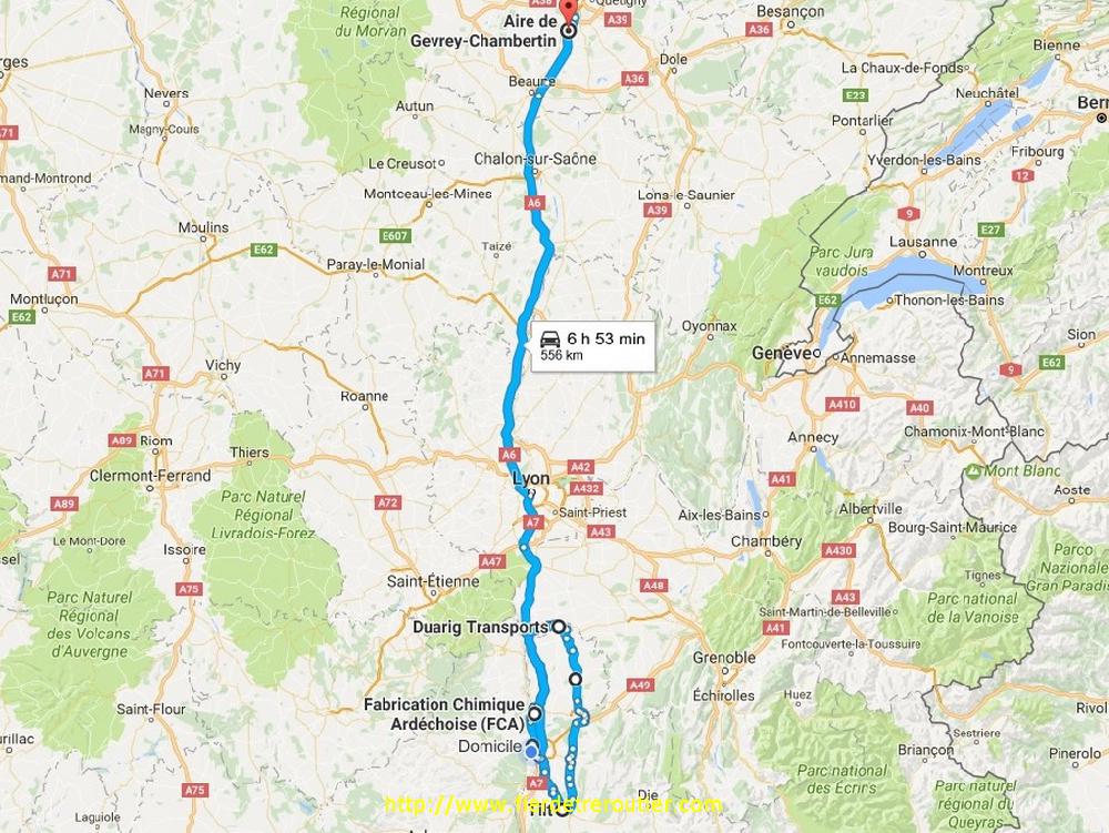 Il a pas trop reneigé dans la nuit, mais c'est toujours autant le merdier sur le parking ce matin, je demarre à 8h30, et si ça veut rire je peux arriver en moins de 4h30 au dépôt. Quelques kilomètres plus loin, je tombe dans une bonne bourasque de neige, je suis positivement surpris par le comportement de ceux qui roulent ce matin, et ils sont déjà nombreux entre les skieurs et les routmans, ça colle pas et ceux qui doublent le font sans geste brusque avec -1 forcement le moindre flocon reste collé à la route, ça s'arrête net à Dijon, mais ça recommence trés trés fort entre Tournus et Macon. Arrivé à Villefranche il faut presque beau c'est normal vé, on approche du sud !