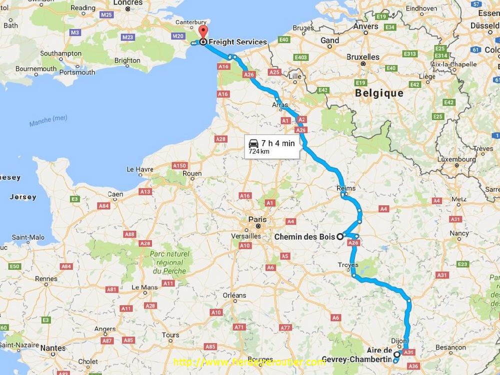 Quand je me pointe à Eurre, Patrick à presque fini de vider, on est synchronisés quand même, et encore, on est que lundi ! Retour pour la 2e fois de la journée au dépôt, mais à vide cette fois-ci. Je reprends mon frigo et je charge un quai un complet de peinture, enfin, des pots pas des toiles, pour Liverpool. Comme il reste une place, mon chef me rajoute une palette pour le 51. Régis aussi charge pour la GB mais avec un crochet via le 57, il aime se promener Régis !! Passé Lyon, il se met à neigeouiller, mais rien de bien méchant, de toutes façons, il fait 1 ou 2 degrés suivant les endroits, pas de problème, je finis mes heures à Gevrey Chambertin ou le parking est full, mais il reste le plan B pour se poser OKLM là ou c'est interdit ! 21h30 fin des opérations pour ce lundi, y en a bien assez.