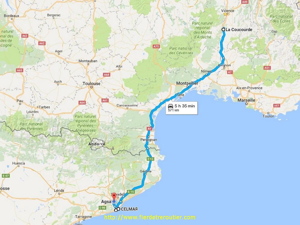 C'est pas pour dire mais c'était bien hardos de se lever ce matin à 3h, mais voilà, c'est en se levant tôt qu'on gagne de l'argent et c'est pas Madame Fion qui me dira le contraire. Donc, le temps de me passer un coup de gant et de becter je demarre, ma montre affiche 3h48. Il pleuvasse ce matin, les essuie glace me tiennent compagnie du moins jusqu'à Montelimar après, c'est le suuuuud. J'aurai bien pris un café en route ce matin, mais l'idée même de me prendre la tête pour me garer et finalement me retrouver face à une machine degueulasse ou pire face à un hygiaphone m'ont vacciné et finalement, je me tape un roupillon de 15 minutes juste avant Roquemaure, je vaux plus que dalle, il faut bien l'avouer. Ma seule motivation ce matin, c'est de passer Montpellier avant que ça commence à bouchoniner, il était finalement un peu plus de 8h quand je me suis radiné au centre des camionneurs à Narbonne pour me jeter un café et une douche (la n°2) mais on s'en fout.