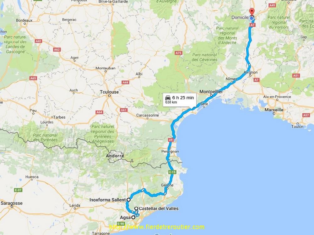 J'avais bien remarqué la presence de saleuses, et ça loupe pas, il se met à floconer, pas fort, mais quand même. En tous cas, ils sont pas cons ici, ils prevoient au cas ou. Je gerbe ce que je peux, histoire de faire un peu de place, il faut aussi tomber sur un cariste concilliant, c'est pas toujours gagné, mais ce matin oui. Je repars à 13h de là, direction Caldes De Montbui, c'est le bordel après Terrassa comme d'hab, il pleuvasse ici, ce qui n'arrange rien, du coup je me radine à 14h chez le client au moment de la relève, il y a un camion slovacobelge à charger avant moi, ce qui me laisse le temps de manger un bout, mais aussi de m'enquerir de la situation dans la vallée du Rhône. Alors que Fion preconise la suppression d'encore plus de fonctionaires, le trafic dans la région de Montélimar est cauchemardesque, je regarde pas la météo d'ou je suis, mais seulement Google Map option trafic. J'en deduis que rien n'est salé, comme d'hab. Les français si prompts à se moquer des autres, sont nuls à chier dans ce domaine. Le sel c'est pas bon pour les artères humaines, mais pour les artères en bitume, ça fait rien...
