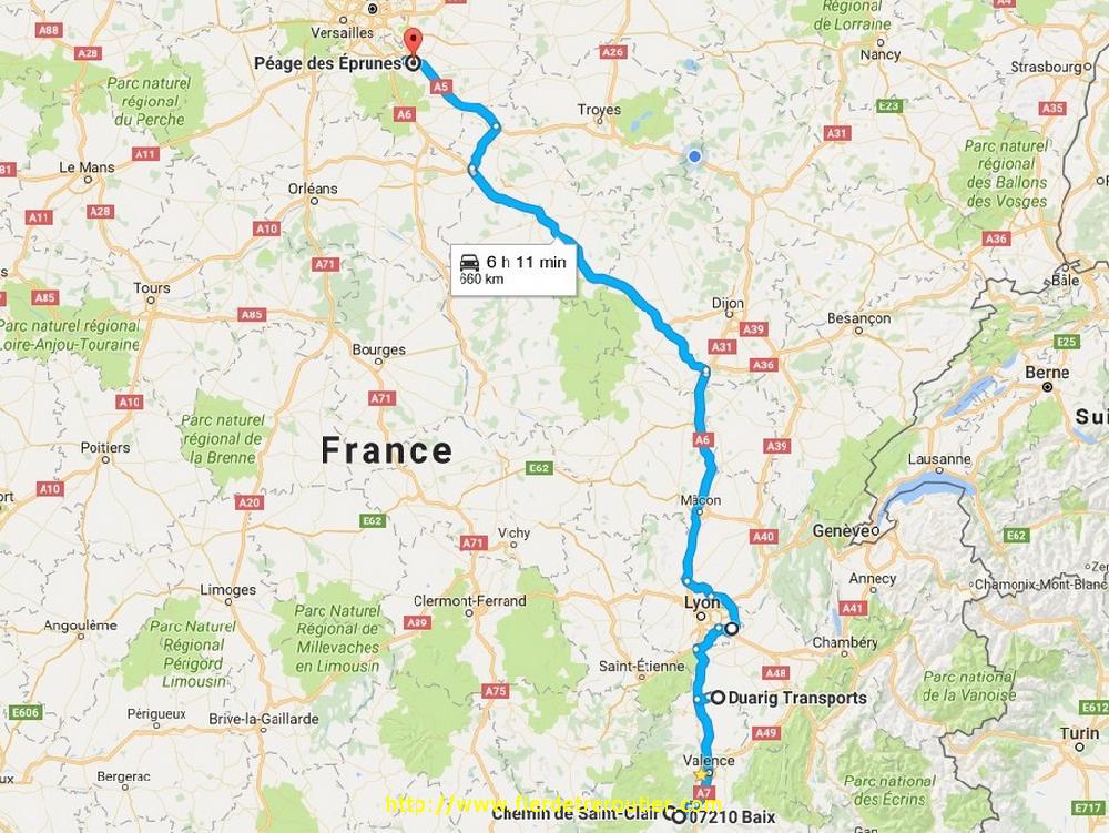 Pour une fois, ce matin, il ne gèle presque pas. Quand je demarre après avoir pris le café avec mon voisin il est déjà 7h45, et le grosse difference par rapport à lundi passé c'est que c'est blindé pour sortir du village. Heureusement j'avais quand même prévu le coup pour arriver à l'heure à Eurre, et oui c'est facile comme jeu de mots. A 8h30 je debarque chez le client, ils terminent de vider celui de 8h. Il me faut ensuite retourner sur mes pas pour recharger un complet Birmingham à Tournon, les bouchons ont tous disparu, ça roule nickel pour traverser St Peray, par contre, il y a de l'attente pour charger, c'est la reprise et le parking est plein.