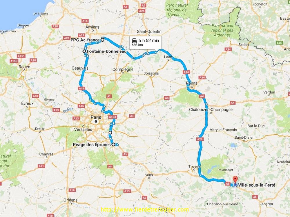 A pile 9h01 de coupure je demarre, j'ai pas trainé ce matin parce que je trouve que partir à 5h45 des Eprunes c'est déjà tard pour contourner la capitale de la France, qui n'est pas Privas, mais Paris. D'autant plus qu'il a fait une averse et qu'il fait -1, -2 par endroits et ça brille, mais le francillien est un pilote du coup ça roule comme s'il s'était rien passé, moi je flippe de devoir tout planter au cas ou ça parte tout en cacahuète. Plus j'avance, plus ça se charge évidement et ça a tapé sur Roissy d'après la radio et c'est confirmé sur MAP, j'évite le secteur en passant direct par Gonesse pour rejoindre la N17, ça commençait juste à boucher sur l'A104, gros coup de bol pour moi, comme d'hab. Une fois sur l'A16 je peux me detendre un peu la température continue de baisser et c'est toujours autant humide, il y a quelques voitures au fossé, mais ceux qui roulent continuent à taper du 110 à l'aise, no stress. Pendant que Macron explique son programme concernant la Culture sur Culture justement, je vais me jeter un café à la station, c'est Holliday on Ice, j'arrive à peine à marcher, c'est donc piano piano piano que je rejoins Fontaine Bonneleau sur la petite route j'arrive à faire bien patiner alors que je suis chargé comme une mule, il fait -5° ici et c'est archi trempé.
