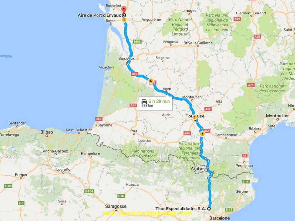 C'est un jour vraiment splendide qui s'annonce, déjà c'est le jour de la paye, et Fevrier, c'est un super mois, dans 28 jours on remet ça ! J'aime l'argent, on m'appelle Penelope07, 8000€/mois à rien foutre, et oui !!! Non seulement ça, mais en plus, il y a une toute petite brumasse ce matin qui veut dire qu'il va faire beau aujourd'hui. Le chef au bureau se confond en excuses, il y avait 3 Duarig hier à cherger ici, en bon 4e j'étais bien prévu ce matin, c'est pas grave de toutes façons. La commande est bien prête, et pendant que ça charge je vais à la pêche aux infos, vu qu'il fait beau je me suis mis en tête de passer par les Pyrenées et Puigcerda, mais en ADR, je sais pas trop comment ça fonctionne.