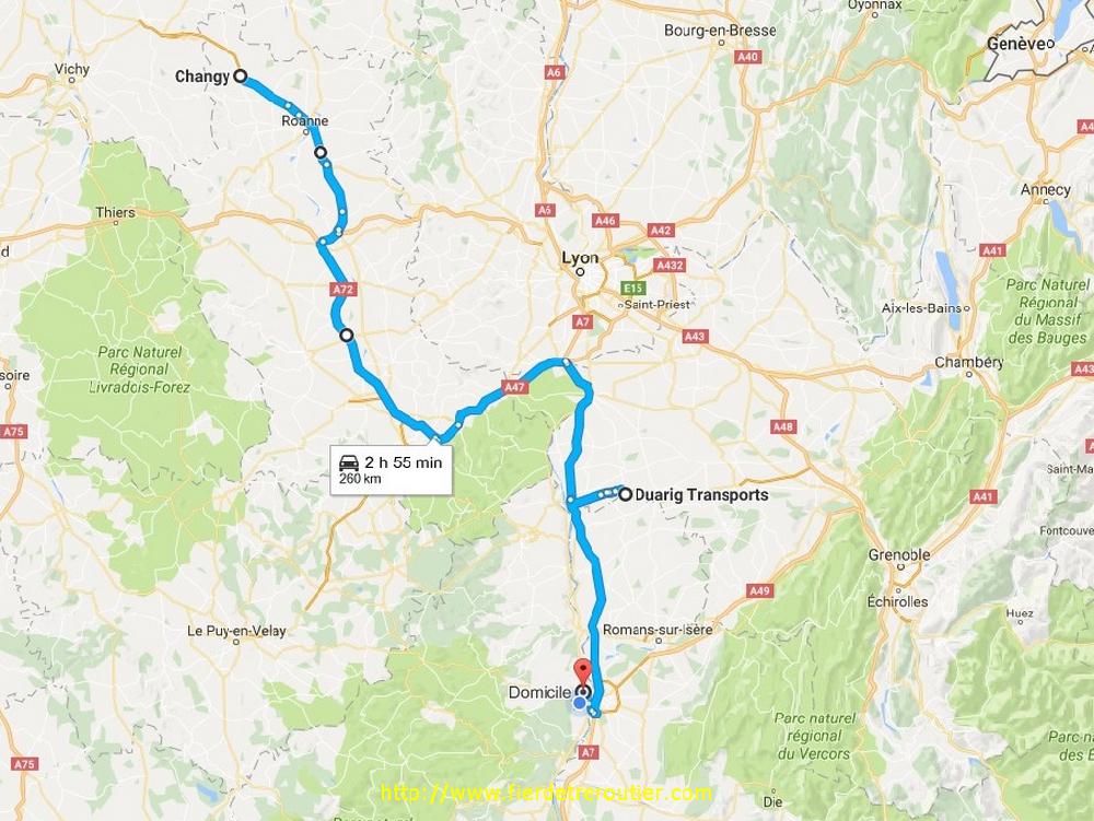 C'est juste à l'entrée du tunnel d'Angers que je récupère l'autopista, il fait un temps de chien avec enormement de pluie venteuse, les types qui vont devoir debacher aujourd'hui vont bien s'amuser. Je fais ma coupure douche à la AVIA juste avant Tours. Ici, pas de clef, j'avais eu ma dose ce matin, mais un jeton ouff. Je debarque à 20h30 à Avermes, la seule chose qu'il me reste à faire c'est m'inscrire. A ma grande surprise le gardien me dit que c'est génial que je sois là si tôt, le gars de la reception attaque à 22h, et en général ce que j'amène arrive que vers 3h et c'est la merde. C'est donc une super nouvelle ! A 21h30 je me positionne quai 8, une demi heure plus tard on attaque à vider et en 30 minutes c'est fait, papiers signés, IMPECCABLE ! Monique Ranou si tu me lis j'ai tous bien posé tes plats que tu as préparé avec amour, no reserves ! J'ai plus qu'à me rapprocher un peu de Rhône Alpes. Il y a un nouveau bout de 4 voies pour éviter Varennes, mais ça fait perdre 4min au GPS, je me pose un peu avant minuit à Changy, impecc !