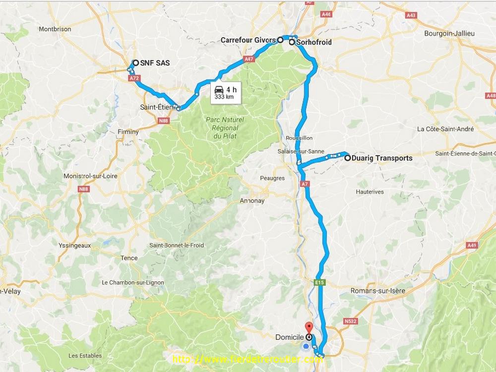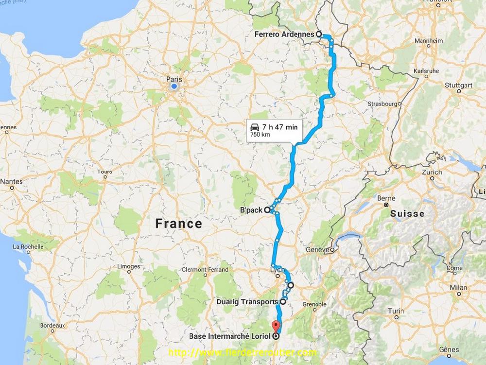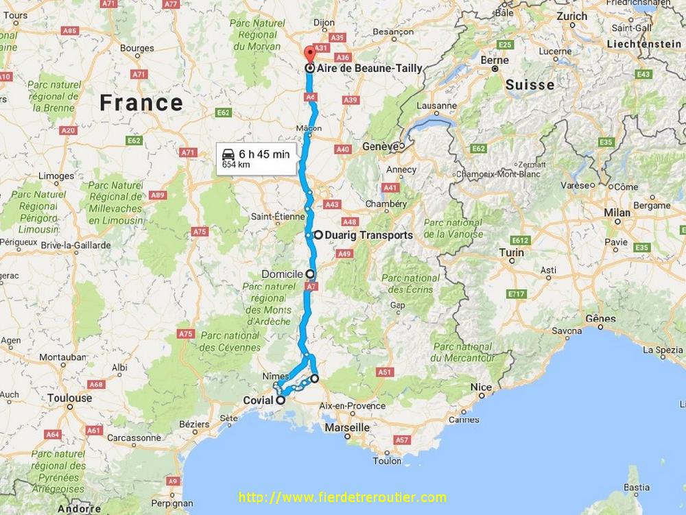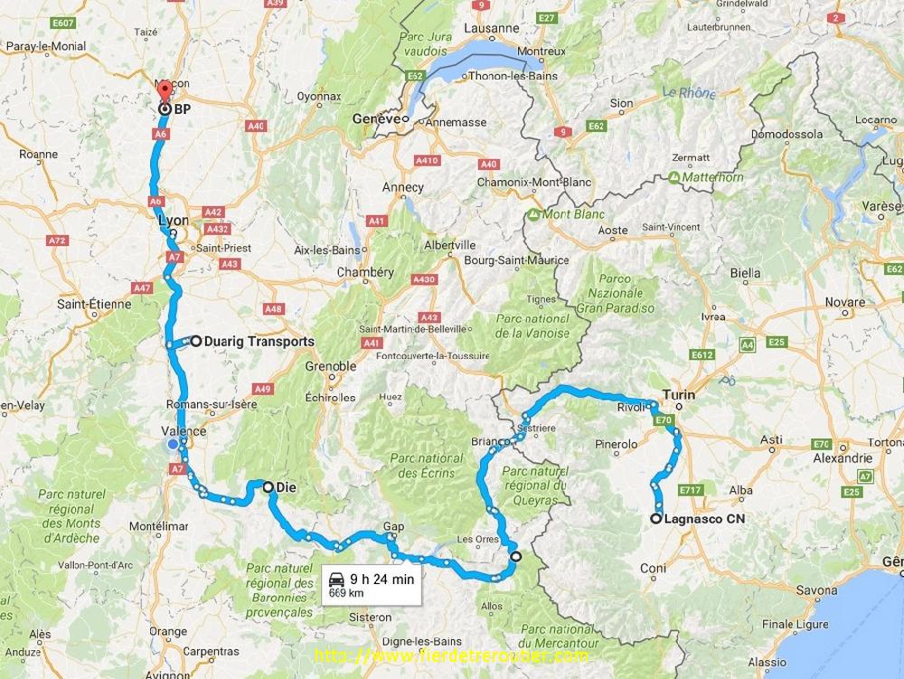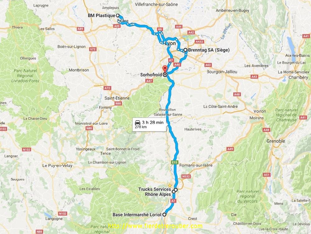 Reste ensuite encore à passer le col après Barcelonette et le Col de Cabre pour enfin arriver à Die, à 16h je suis à quai, challenge réussi ! De là, je rejoins la kommandantur via Romans et Hauterives, si bien que j'aurai fait toute le trajet retour en depensant environ 0€ d'autoroute. Je laisse les biscottes pour Annonay au dépôt et je recharge une petite tournée sur la Franche Comté, ça changera un peu. C'est presque 20h30 quand je repars du dépôt, je me cale sur l'autoroute que je lâche à Macon Nord pour aller squatter au centre routier de Macon, ça ira largement bien pour aujourd'hui !