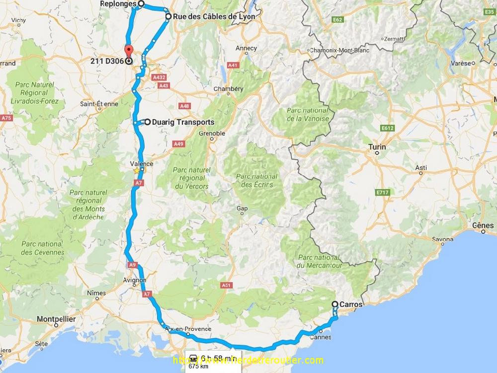Finalement d'avoir attendu, c'était pas une mauvaise chose, aux 5m pour Tarare, se sont ajoutés 3m pour Replonges dans le 01. Il faisait tellement bon cet apreme que j'ai chargé en tee shirt, whaw le pied ! Par contre pour ma dernière ramasse, avant 16h à Carros, c'est un peu foutu. Toutefois, j'ai les heures pour y aller alors j'y go. La remontée est archi chiante, semée de travaux, de basculement de chaussée, et sur l'A12, c'est pas du basculement de chaussée pour faire semblant, en plus il y a grave du camion, et je perds un temps infini avec les interdictions de doubler. Passé la frontière ça continue encore et encore d'accord d'accord. Dans la descente de Carros, les gendarmes se mettent devant moi, ça tombe bien, je sors là aussi. Bon, c'est la St Valentin aujourd'hui, la gendarmerie et moi c'est une vieille histoire d'amour, et j'ai laché 90€, j'ai doublé des mecs qui se trainent à 30, c'est mal, j'assume. La journée se termine quand même par une bonne nouvelle, quand j'arrive chez le client, le boss est encore là, c'est l'americain avec lequel j'avais sympathisé une fois, et il m'a dit tu vas pas rester ici jusqu'à demain 8h quand même !!! Et il m'a chargé, IMPEC ! J'ai quand même toujours un peu de bol même dans mon malheur !