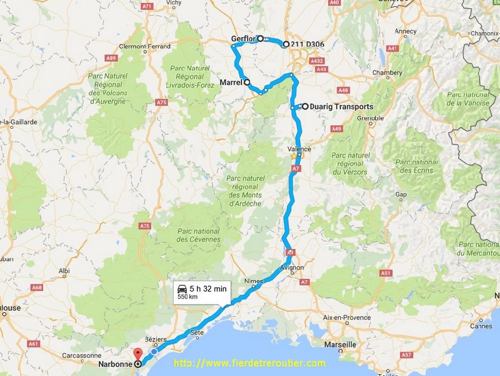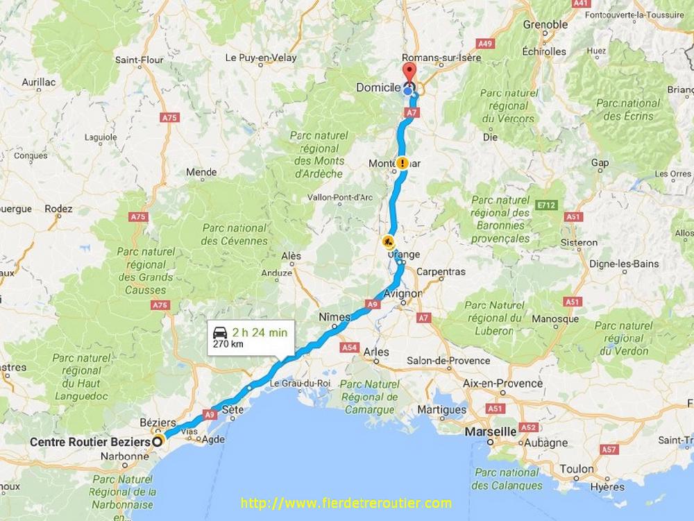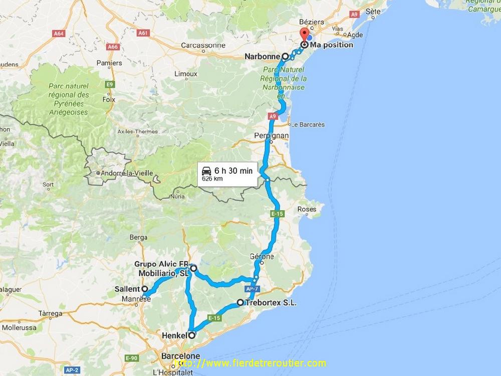 Finalement, je descends en catalogne ce soir, quelle surprise ! Bon, ça va, j'ai connu pire comme tournée, celle-ci sera light, et j'ai même mon retour pour demain, c'est incroyable d'avoir le programme sur un delai aussi long. Mais j'ai beau faire et refaire le truc dans ma petite tête de moineau chetif j'aurai jamais les heures pour remonter vendredi soir à la maison, c'est dommage que je commence à Perpignan, j'avais les heures pour descendre plus bas ce soir ! C'est donc calé à environ 83km/h que je me suis fait le descente, tranquille à l'économie. J'ai atteri en 4h20 à Narbonne et basta, je suis resté là, à quoi bon descendre à perpignan et avoir les boules demain soir de dormir à Montelimar ?? Oh non, ça serait trop triste !