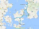 A 5h je quitte le parking de Norre Aslev, et le soleil aussi Aslev, comme le vent d'ailleurs qui ne s'est pas couché lui. Sur les 50km qui me restent à parcourir pour rejoindre le port de Rodby j'ai vu personne dans mon sens, mis à part ceux qui vont dans l'autre sens, ce bout d'autoroute ne sert qu'une fois toutes les 30 minutes dans l'autre sens, ceux qui sortent par pelotons des ferry en fait... Je fais mon ticket vite fait à la Scandline, voie 12, à 6h15 le ferry Princess Benedicte. Je reste dans la cale, pas envie de monter même si ça secoue un peu ce matin. 45 minutes c'est vite passé. La descente va être compliquée aujourd'hui, c'est férié en Allemagne demain, donc, l'Allemand est comme le Français, il a toujours une bonne occasion de poser un jour et se retrouver avec 4 jours à glander, et bloquer les routes par la même occasion.
