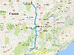 A 15h c'est la reprise, une citerne rentre avant moi, je trouve ça bizarre ici, mais en fait pendant qu'on me chargeait, le citernier remplissait directement des IBC, sans compteur juste à l'oeil. Bien sûr ça giclait un peu de partout mais visiblement c'était pas grave. Du moment que ça gicle pas sur mon camion, c'est pas génant c'est vrai. Ensuite je coupe à travers champs pour rejoindre Caldes de Montbui, la route est jolie par là mais un peu tordue. Je prends 3 palettes pour Grenay, et bien qu'il reste encore 1m60 de dispo je remonte vers la Catalogne Française. Plus je monte plus il fait moche, je rattrape tout doucement un orage au loin de vois que ça tape fort. Finalement je rattrape l'orage vers Montpellier, ça roule vraiment mal tellement il pleut, je visais Nimes EST pour finir mes heures mais je me suis finalement rabattu sur la ZI de Gallargues ou je me pose sous des trombes d'eau. L'avantage c'est qu'il fait un peu moins chaud avec 18° !