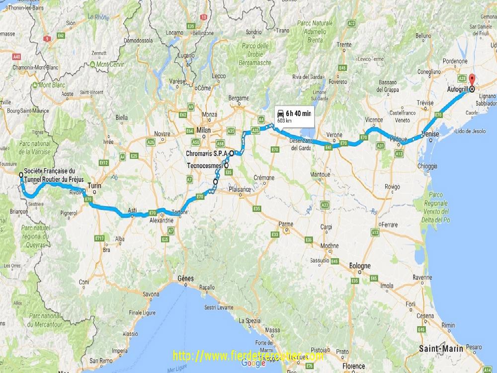 En attente sur le parking, il y a un Iranien avec un Premium, avec Google translate on arrive à s'echanger quelques mots sympathiques, il m'a bien dit de venir en Iran, c'est securisé, moi je veux bien y aller si on me donne le taf pour. En gros le chauffeur part 20 jours de chez lui, et pour venir en Italie il passe par le bateau de Trieste en Turquie. Quand je repars de XPO, il reste encore 1m de plancher, j'ai plus qu'à remonter, clim à fond. Les travaux de l'A4 sont enfin terminés, combien d'années ça aura duré ??? Même si ça bouchonne un peu à Turin, y a pas trop mal, je fais un break douchas à Susa. Comme je pue moins, il y a Benjamin de chez Dehosse qui ose m'approcher, on discute un peu, mais il a du taf le gazier donc on traine pas. A titre personnel, je finis mes heures dans le dernier refuge avant la plateforme du tunnel, il y fait nettement plus frais qu'en bas, à moi la bonne nuit à la fraiche.