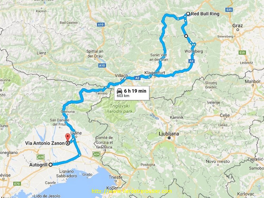 Quelques kilomètres après la frontière, la BOX fait BIP ce qui signifie qu'elle fonctionne, si elle fait BIP BIP, c'est pas bon, si elle fait BIP BIP BIP, c'est encore moins bon et si elle fait BIP BOP EULOULA, là, il faut consulter immédiatement un medecin. Pour aller à Spielberg, il y a 3 routes differentes, la 317 qui part de Klagenfurt, la 78 un peu plus au nord, ça fait le même kilomètrage et enfin, la dernière via Graz mais ça rallonge de 80km. Mais si on se fie aux interdictions aux +7,5T les 2 solutions les plus courtes sont concernées. Et ça fait chier. Malgré tout, je tente par la 317 à l'aller j'ai envie de faire du tourisme, j'ai croisé des camions tout le long du trajet sur cette nationale qui passe de 2 à 3 ou 4 voies, puis d'un coup à une vieille nationale portugaise quasi, enfin, y a des travaux aussi. Quoi qu'il en soit c'est super joli, typique comme dans les guides touristiques. Je me radine un peu après 9h au circuit RED BULL, et quelques minutes après mon coup de fil, le contrôle de la douane débarque sous la forme d'une jolie jeune femme souriante qui a même pas voulu regarder les palettes, elle est restée 30 secondes pas plus. Après une erreur d'aiguillage qui m'a envoyé sur la PIT LANE, j'ai fini par aller au bon endroit pour vider, chez les pauvres de la F2 et du GP3.
