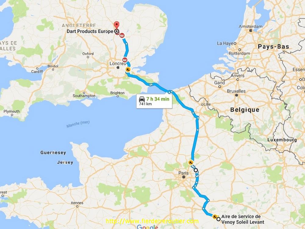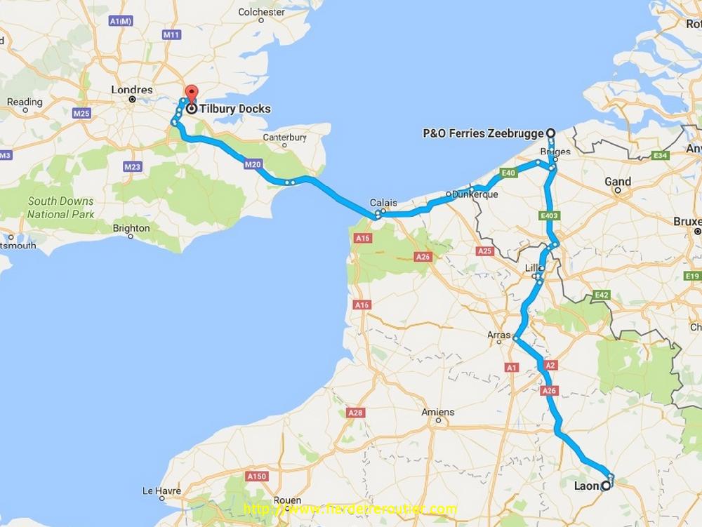 Un malheur n'arrivant jamais seul, Tonin arrive un peu après aussi, mais il est prévu sur celui de 14h, et moi 13h15, ça m'arrange et pour m'en debarasser je me fends d'un café. Le mec a Starbuck voulait pas de mon billet de 5£ de la Bank of Scotland, le pauvre il savait même pas que ça existait, j'ai halluciné ! A peine le café avalé que c'est l'heure d'embarquer, à moi la mega sieste dans la cale, comme ça j'évite la cohue des vacanciers la bas en haut. Arrivé au Port de Calais c'est blindé de chez blindé, avec le tunnel en rade tout le monde est ici. Finalement à 16h je suis en terre sainte, la France, dont c'est la fête nationale demain. Ce qui signifie qu'à 22h, rideau, c'est fini pour les routmans. Moi j'ai de l'amplitude que jusqu'à 22h30 de toutes façons. Comme je suis fou, pour descendre j'opte pour la descente via la région parisienne, arrêt obligatoire à Roye pour une vraie douche, parce que ça va 5 minutes les douches pourraves.