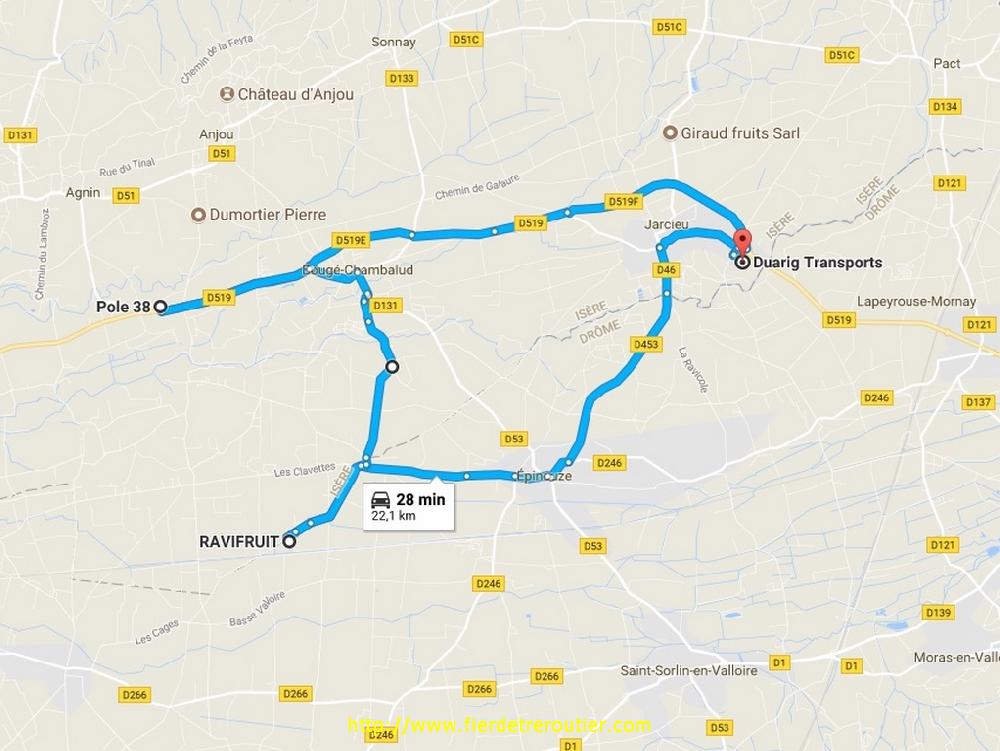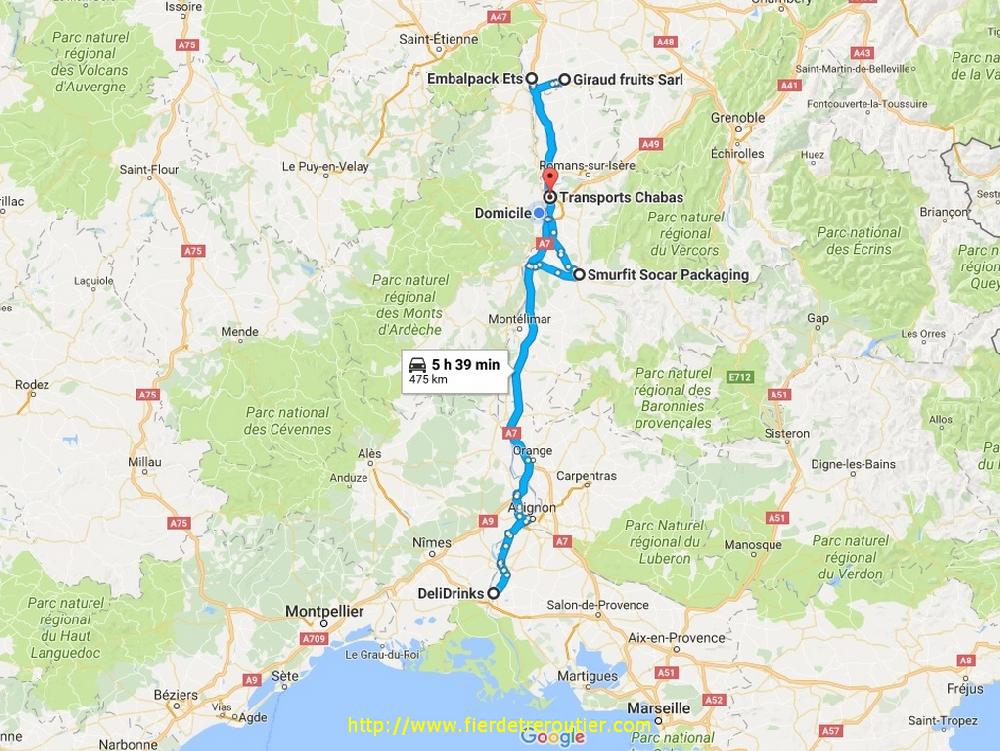 Pour demarrer, je vais à Salaise chez Sanne Fruits, l'été chez Lubac j'allais la bas une ou deux fois par jour, la mamy est toujours aux bons soins, et toujours aussi péchue en plus j'ai un colis de Bergeron en cadeau, ça fait plaisir d'autant qu'ils sont super bons. Les choses se sont nettement gatées après, rien n'est prêt chez Ramberfruits, pas avant 20h. Donc calculement tout ça, j'ai menti un peu à l'affreteur en disant que c'est à 20h que termine mon amplitude. Du coup il m'a promis de mettre la pression grave, je repars chez Chanabel prendre une palette et je reviens à St Rambert. Finalement je repars à 19h45, ils ont bien mis la pression, heureusement ça roule sans pinallier sur l'A7, et je peux dire que chez Chabas ils ont pas trainé pour me vider, j'ai vu des anciennes têtes connues, c'était marrant et c'est toujours autant le bordel ici. Ensuite j'ai plus qu'à rentrer fissa fissa à la maison, du coup j'ai dépassé que de 8 minutes mon amplitude je me dis que c'était inesperé et que ça valait bien un gros mensonge ! En attendant je vous fait plein de mimis et je vous dit à tous un grand merci !!!
