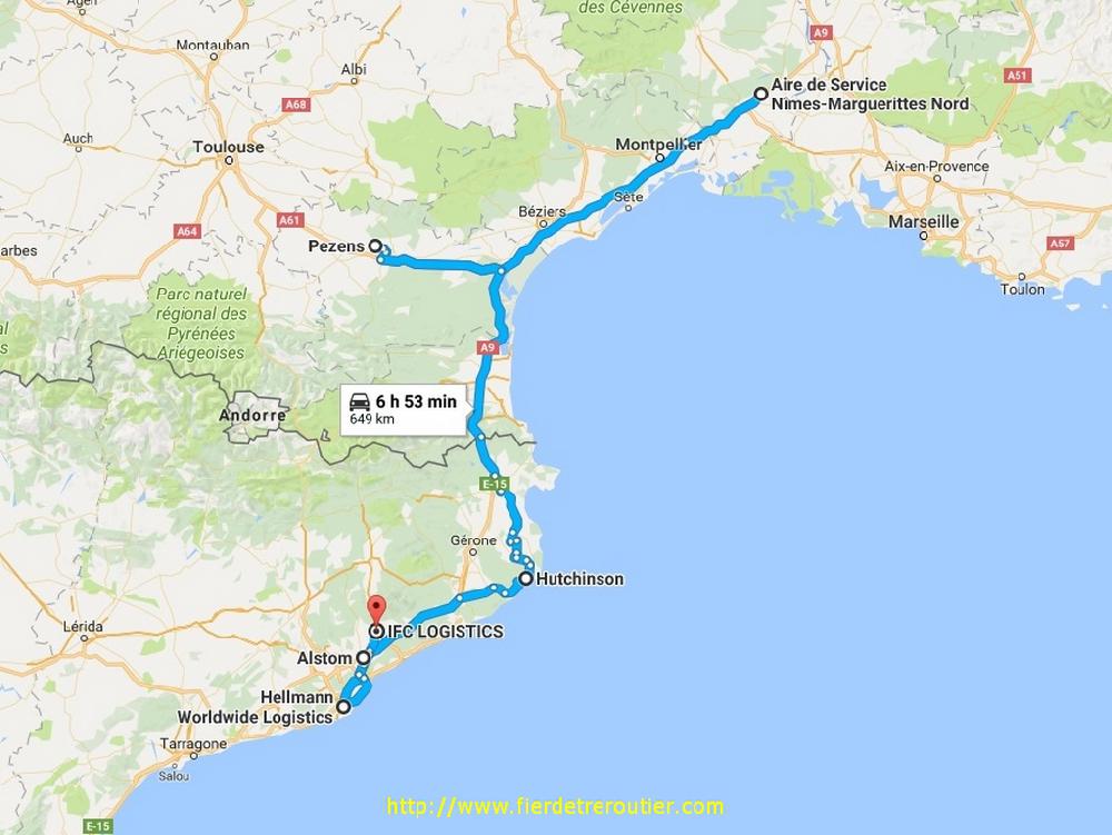 A midi c'est plié, direction la Catalogne. Il fait toujours de petites averses de merdouille, je m'arrête casser une bonne croute à La Palme en ecoutant les infos, je suis réglé comme du papier à musique. Au passage je fais un mimi à Santi, il parait qu'Altaya sort un facsicule avec un DAF d'Onatra, mais il l'avait pas.