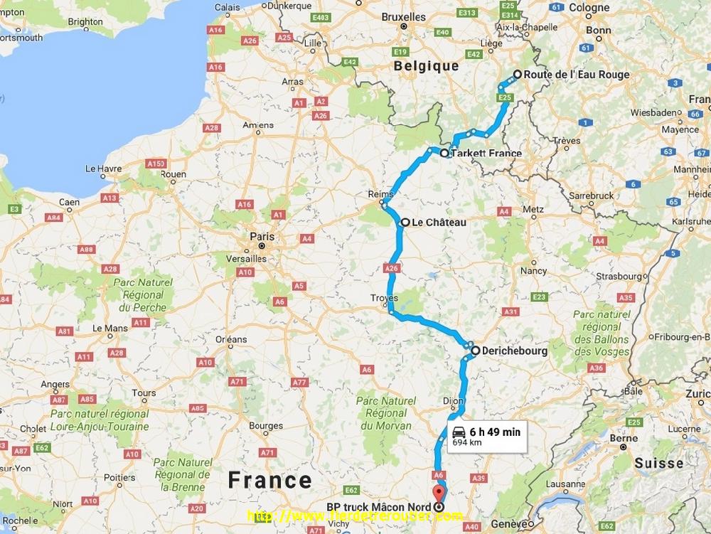 Il difficile de croire avec le calme qu'il règne ce matin à Spa que quelques heures avant il y avait un boucan et une animation d'enfer ici. J'ai dormi comme un nouveau né, le top du top ! C'est juste le message du matin du chef qui m'a sorti du lit. A l'armée il y avait le brigadier de semaine qui ouvrait violement la porte en gueulant "REVEIL!!!" presque 30 après ma liberation, y a toujours un brigadier qui me reveille mais sous la forme d'un BIP BIP de texto, le resultat est toutefois le même. J'ai le temps de me debarbouiller et dejeuner tranquille. J'allais partir faire un tour de paddock avec Arthur quand j'ai reçu mon rechargement, j'ai décollé à 8h30, avant Alexi la Marmotte. Direction Sedan, à 2h de route, il y a pas grand monde ce matin, et à vide ça va assez vite à traverser les ardennes Belges, et j'arrive rapidos en France, le pays de mon enfance comme dirait Enrico. La zone industrielle de Sedan est assez facile à trouver, du moins mon client est fleché, je me gare sur le parking un vigile vient me trouver, j'annonce mon chargement les references, mais le type ça lui dit que dalle, ça commence bien. En fait je me suis trompé de portail, je suis pas à la bonne usine, paye ta honte Phil26 !
