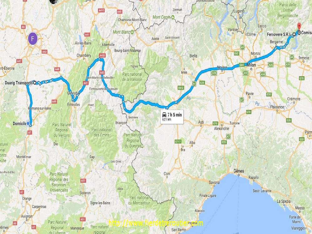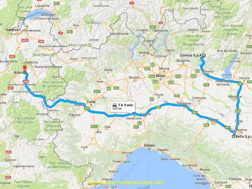 J'ai droit à un contrôle de Police juste après Susa. 28 jours de carte, les papiers et tout. Bilan positif, j'avais un 10h07 il y a 15 jours, il m'a dit attention, comme si que je faisais jamais attention. De la part d'un mec coincé dans son anorak chauffage à fond dans la bagnole qui passe son temps sur facebook... Enfin, il avait la flemme de mettre un PV, tant mieux. Rien à signaler entre Turin et même Milan que je traverse sans bouchon après avoir cassé la graine à Novara. Il est 15h quand je me radine à Lovere. En une demi heure c'est fait, ça va super vite. Il me reste environ 25 minutes pour trouver une place potable, mais par ici, y a pas grand chose. Je guettais une zone industrielle, un parking tordu, et finalement je me suis posé au hasard dans la toute petite ZI à côté de Neziole avec 8h53, et pile pour caser une 11h ! I love my job !