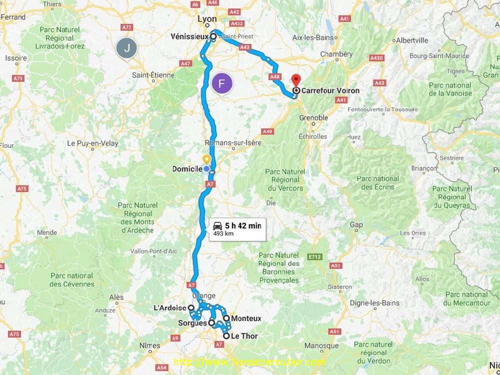 Je me décide à décoller à 5h ce matin, au rond point de la zi, je croise les Mossos, ils ont dû s'echapper, j'ai pas trop le droit d'être là en plaques orange en fait. Mais ils m'ont pas vu. Une fois sur l'autoroute, je suis tranquille, d'autant plus qu'il y a pas grand monde ce matin et c'est tant mieux. Il est 7h quand je me jette sur mon pain au raisin et sous la douche arrosé d'un café, enfin, tout ça mais dans le desordre au centre routier à Narbonne, Jacques est tout seul au service RTT oblige, c'est la panique. Pendant que ça se charge doucement sur l'A9, je fais un stop rapidos à Fabrègues ou je retrouve Ju68 l'africain alsacien qui fait la pause avec son fils OKLM. On fait un bout de route ensemble jusqu'à Nimes ou nos chemins se séparent, je monte direct à Jarcieu city.