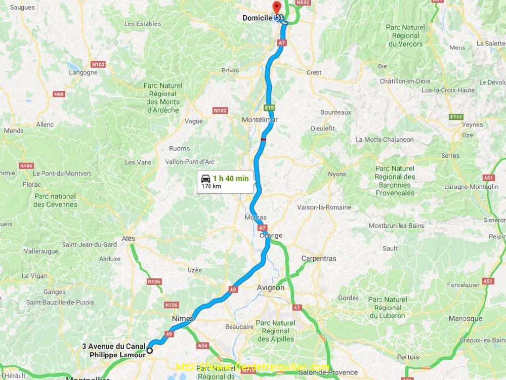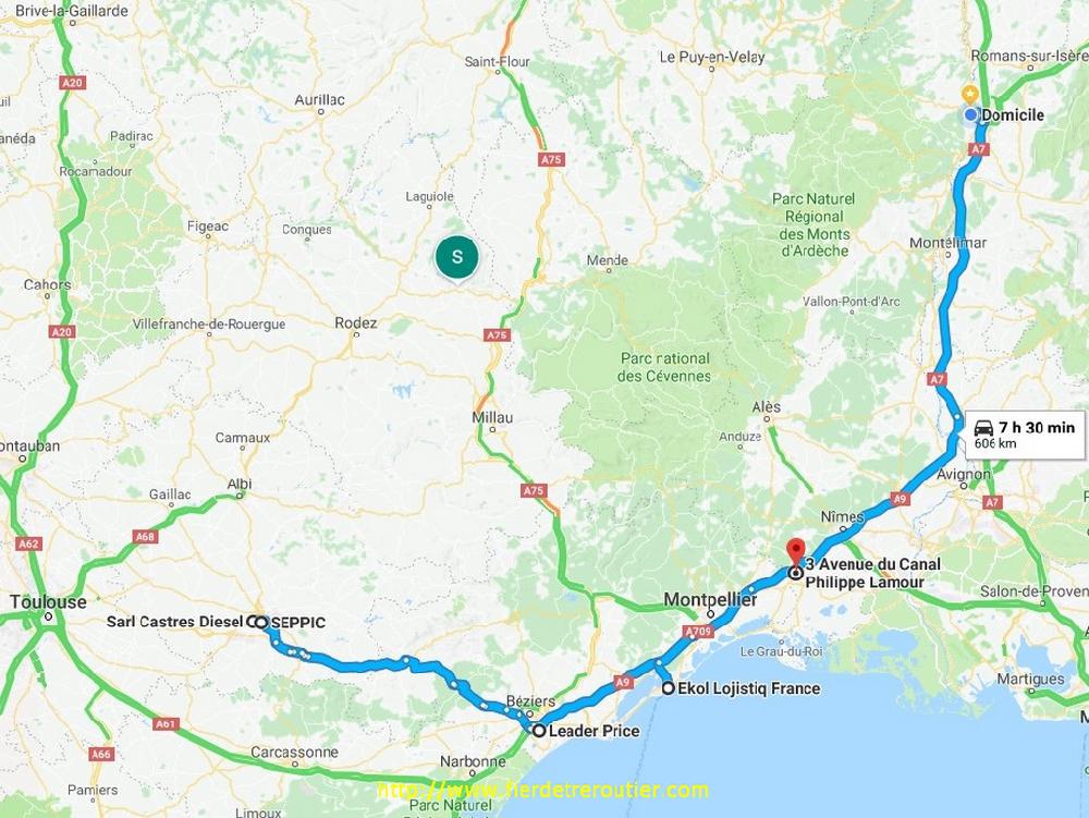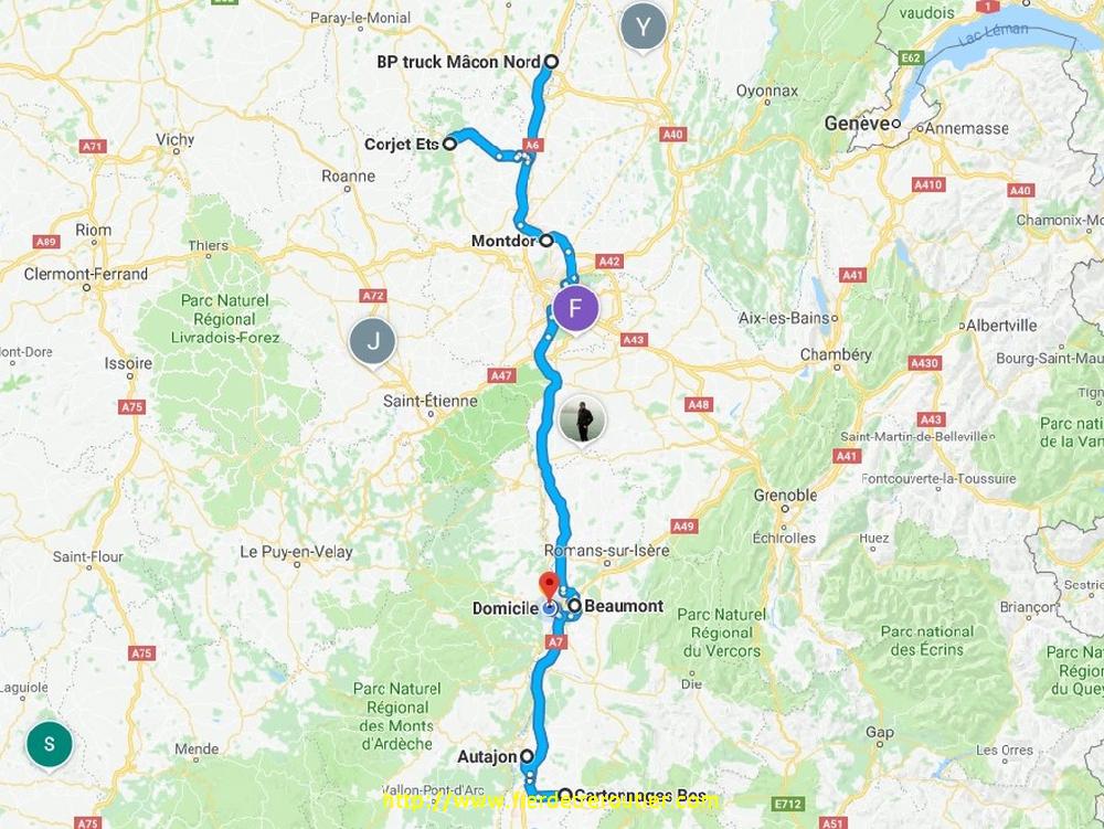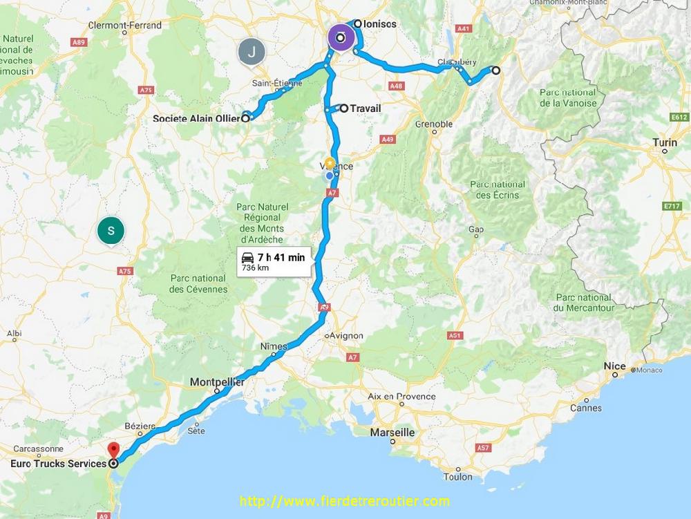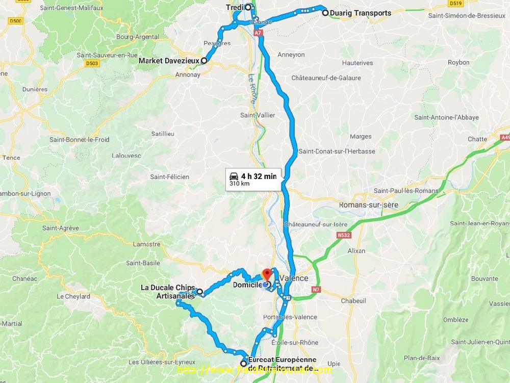Mais je ne peux pas passer la matinée à glander ici, il me faut rapidement m'en aller et rouler en direction de Montélimar avec l'obligation express de contacter la tour de contrôle avec Montélimar sud car 2 options s'offrent à moi : Soit un St Paul 3 Chateaux - Salaise ; soit un St Raphaël - Crest... Bon, évidement j'ai décroché le gros lot, des déchets pour Salaise, ça me manquait en fait les poubelles. Bon, les poubelles à Gerflor, ça va, c'est cool à faire, à part quand il a plu pendant des jours et que les fûts souillés coulent dans la remorque.