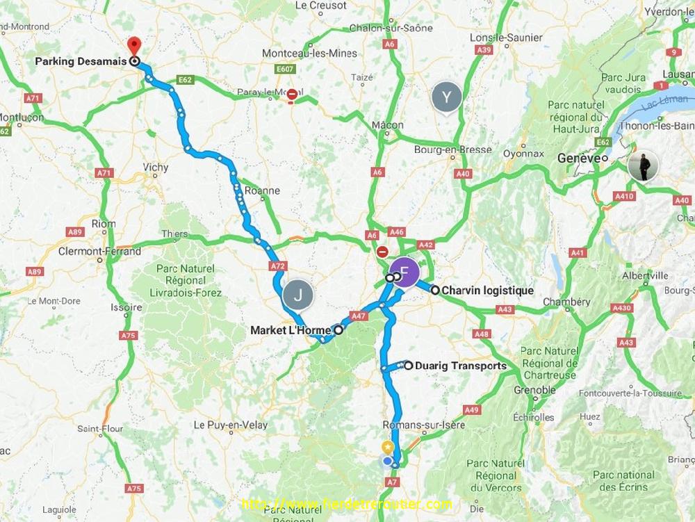 Parce qu'il faut bien decoller un moment ou un autre, je ripe d'Aiton à 5h45. Bien qu'il soit tôt, il y a déjà pas mal de savoyards en route. La plupart mettent (ou pas) leur cligno à droite, direction Grenoble, la chance ! Je trace tout droit et traverse Chambéry avec ses 2 radars discriminants à 80, et le 2e posé dans un faux plat pour bien te troncher. Mais pour janvier j'ai eu mon quota, faut pas deconner. Plus je me rapproche de Lyon, plus ça roule, mais j'ai pas de stress, je me suis tapé les bouchons de Lyon lundi, aujourd'hui je pose tout à Sant Quentin Fallaviero. Je debarque là après le café à 7h30, sans grand espoir vu les avis negatifs de la boutique sur Google Map. Mais il faut tordre le cou aux idées reçues, à 8h15 la semi était vide et moi, content.