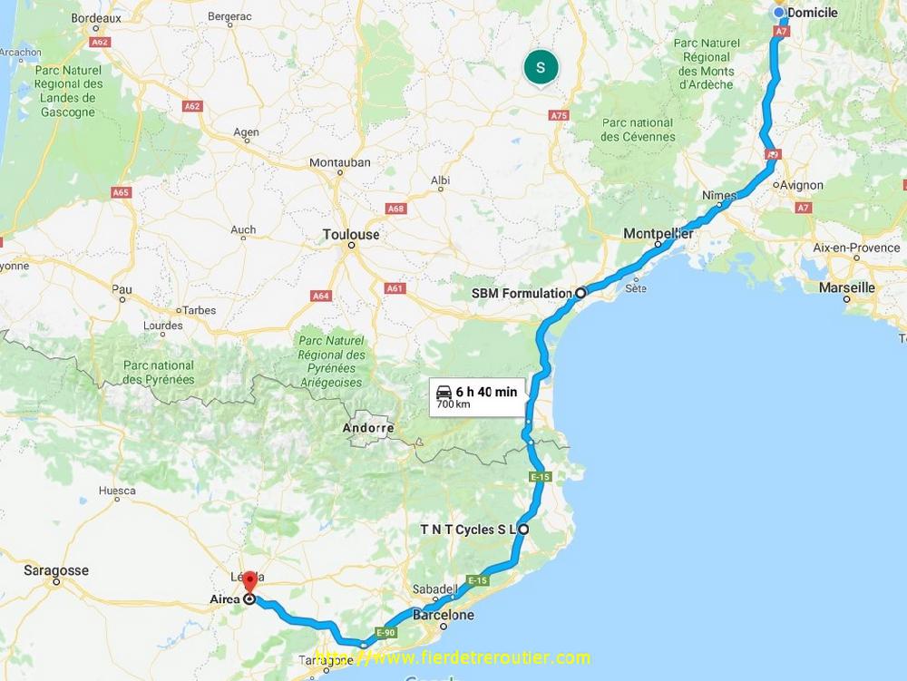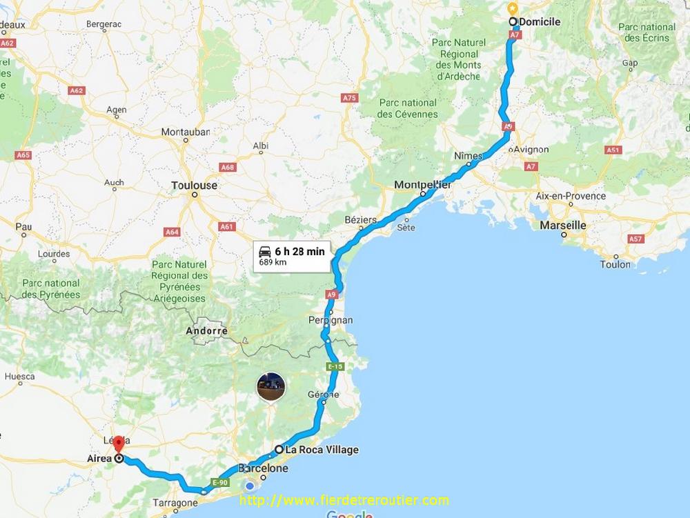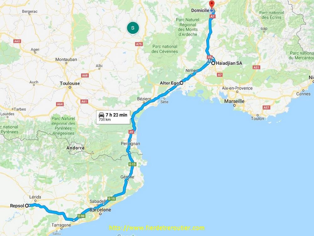 Je me suis reveillé d'un bond, pensant m'être oublié, je regarde l'heure, 3h45. J'hésite à me recoucher, et puis finalement j'attends patiemment en matant des vidéos débiles. De plus en plus, je vois des vidéos dashcam, sur le thème : "egardez comme les autres conduisent mal, alors que moije conduis super bien". J'avoue que ça m'énerve au moins autant que ceux qui se font un plaisir à faire le buzz avec des images d'accidents plus violents les uns que les autres sous un pretexte de "pedagogie" allez vous faire foutre. A 5h15, c'est l'heure et je décolle, il y a déjà pas mal de monde sur la route du travail direction Girona, j'ai pas trop le droit, mais je prends le gauche et je recupère l'autopista à Girona sud. Il pleut ce matin sur la Catalogne et pratiquement jusqu'à Narbonne. Je me pose pour la douchedej, il est 8h.