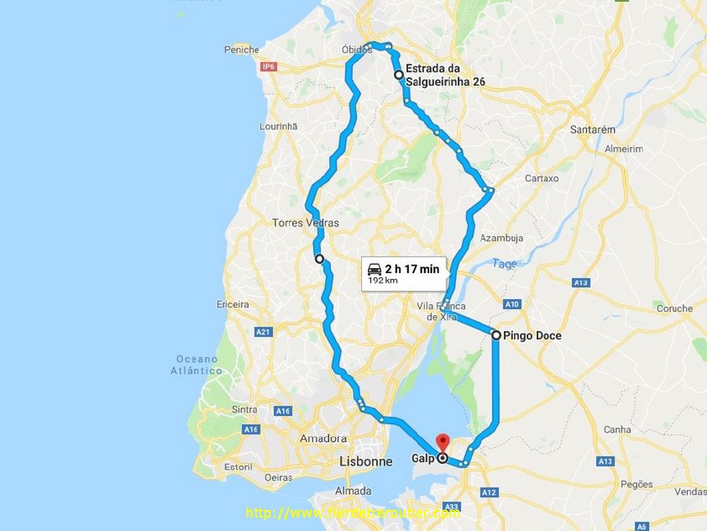 Une fois la ramasse faite, on campe un bon moment et la pluie finit par se calmer un peu. Au bout de 3h, y a rien de mieux, on retourne au parking avant le Pont, sans se presser, ça sert à rien et de toutes façons sur la nationale ça avance pas. Vu que le frigo commence à se vider pas mal, on fait le plein à Pingo Doce de Samora Correira. Retour au parking à 19h30, niveau coupure de 11h cette semaine, on bat tous les records ! Il y aura eu 3h de temps sec, c'est juste incroyable !!!